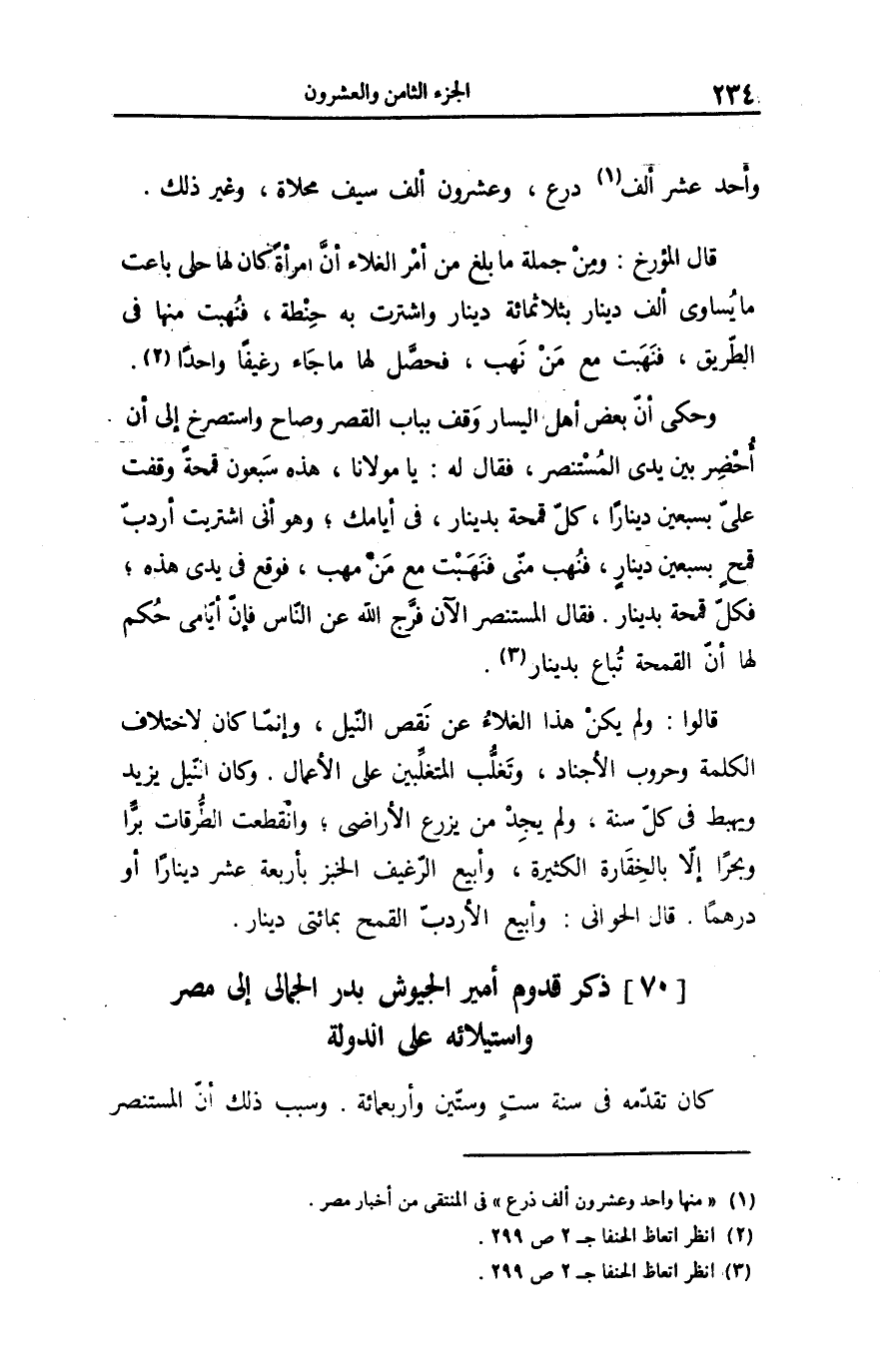 [70] ذكر قدوم أمير الجيوش بدر الجمالى إلى مصر واستيلائه على الدولة