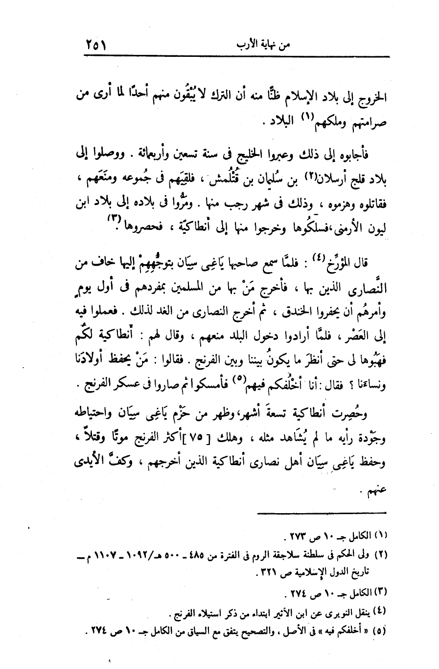 فأجابوه إلى ذلك وعبروا الخليج فى سنة تسعين وأربعمائة. ووصلوا إلى بلاد قلج أرسلان «2» بن سليمان بن قتلمش، فلقيهم فى جموعه ومنعهم، فقاتلوه وهزموه، وذلك فى شهر رجب منها. ومرّوا فى بلاده إلى بلاد ابن ليون الأرمنى، فسلكوها وخرجوا منها إلى أنطاكيّة، فحصروها. «3»
