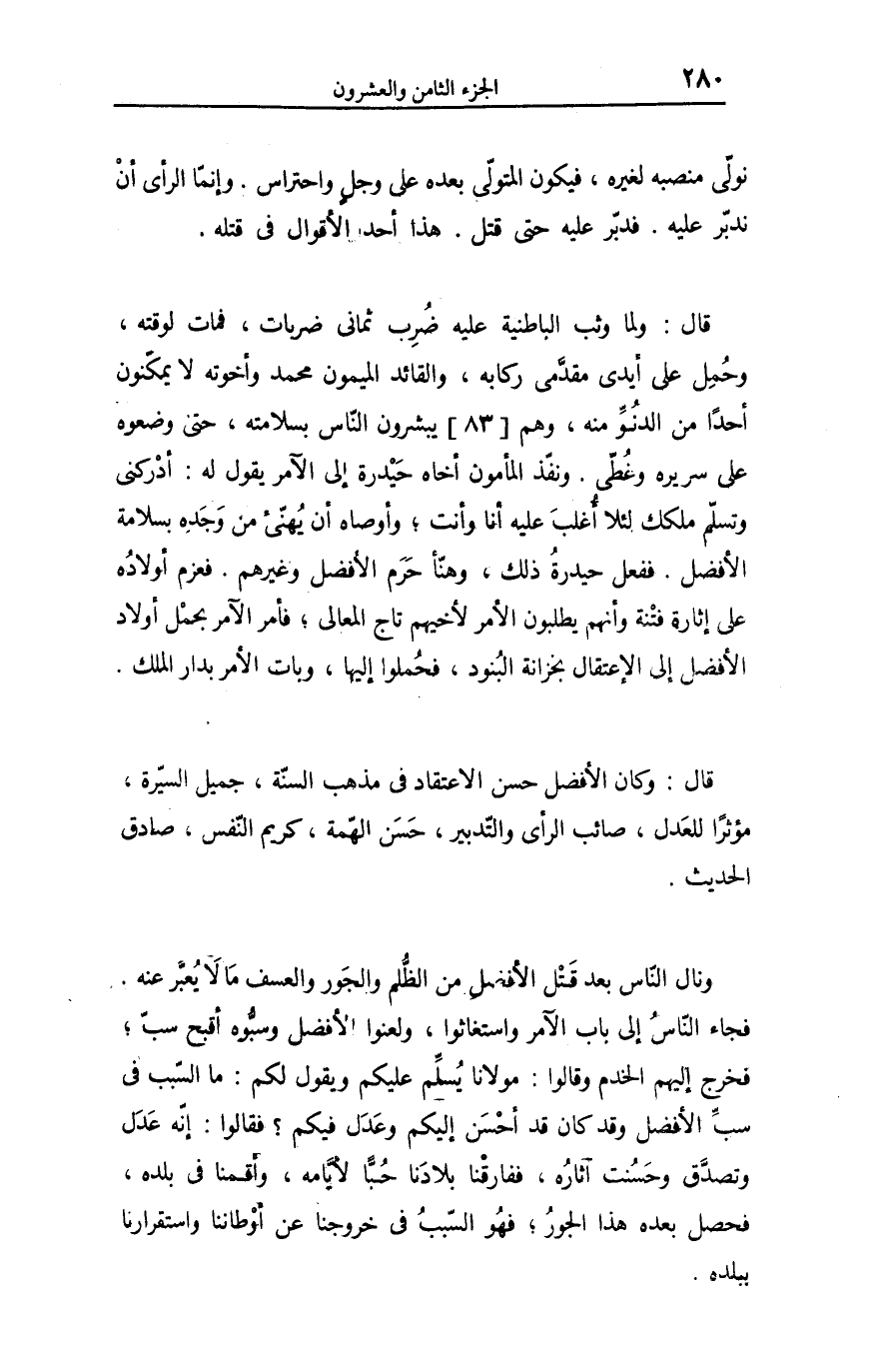 ونال النّاس بعد قتل الأفضل من الظّلم والجور والعسف ما لا يعبّر عنه.