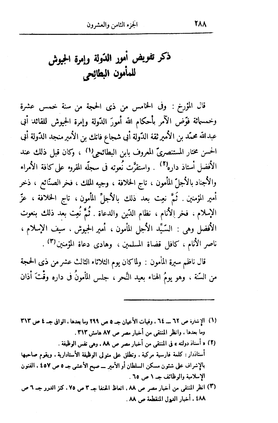 ذكر تفويض أمور الدّولة وإمرة الجيوش للمأمون البطائحى