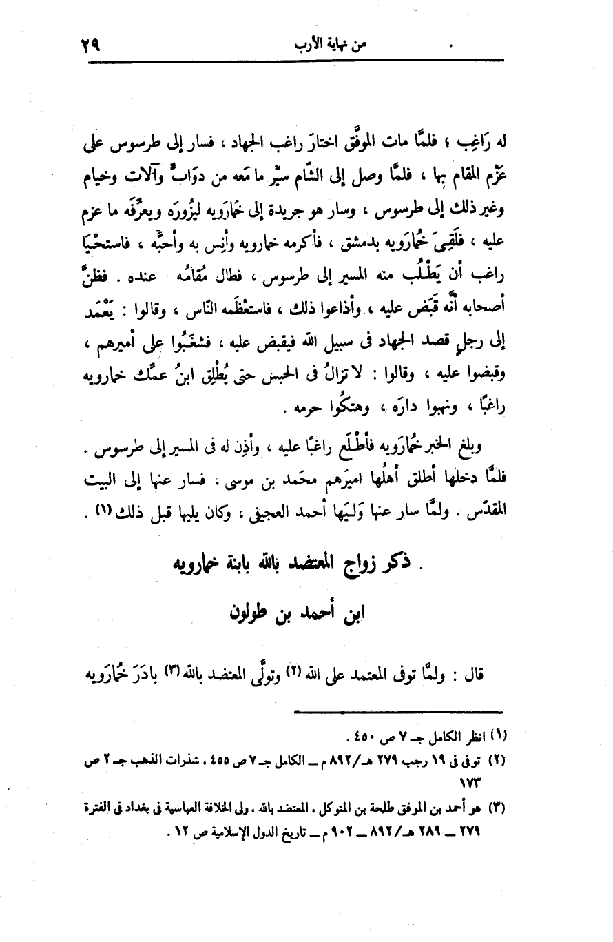 قال: ولمّا توفى المعتمد على الله «2» وتولّى المعتضد بالله «3» بادر خمارويه