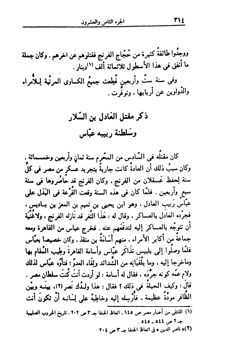 ذكر مقتل العادل بن السّلار وسلطنة ربيبه عبّاس