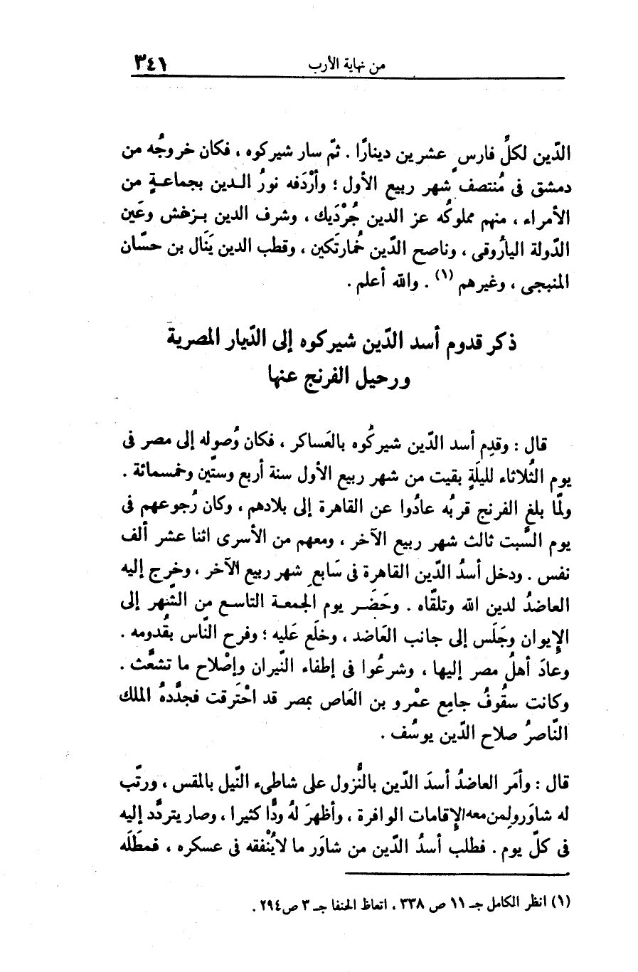 ذكر قدوم أسد الدّين شيركوه إلى الدّيار المصرية ورحيل الفرنج عنها