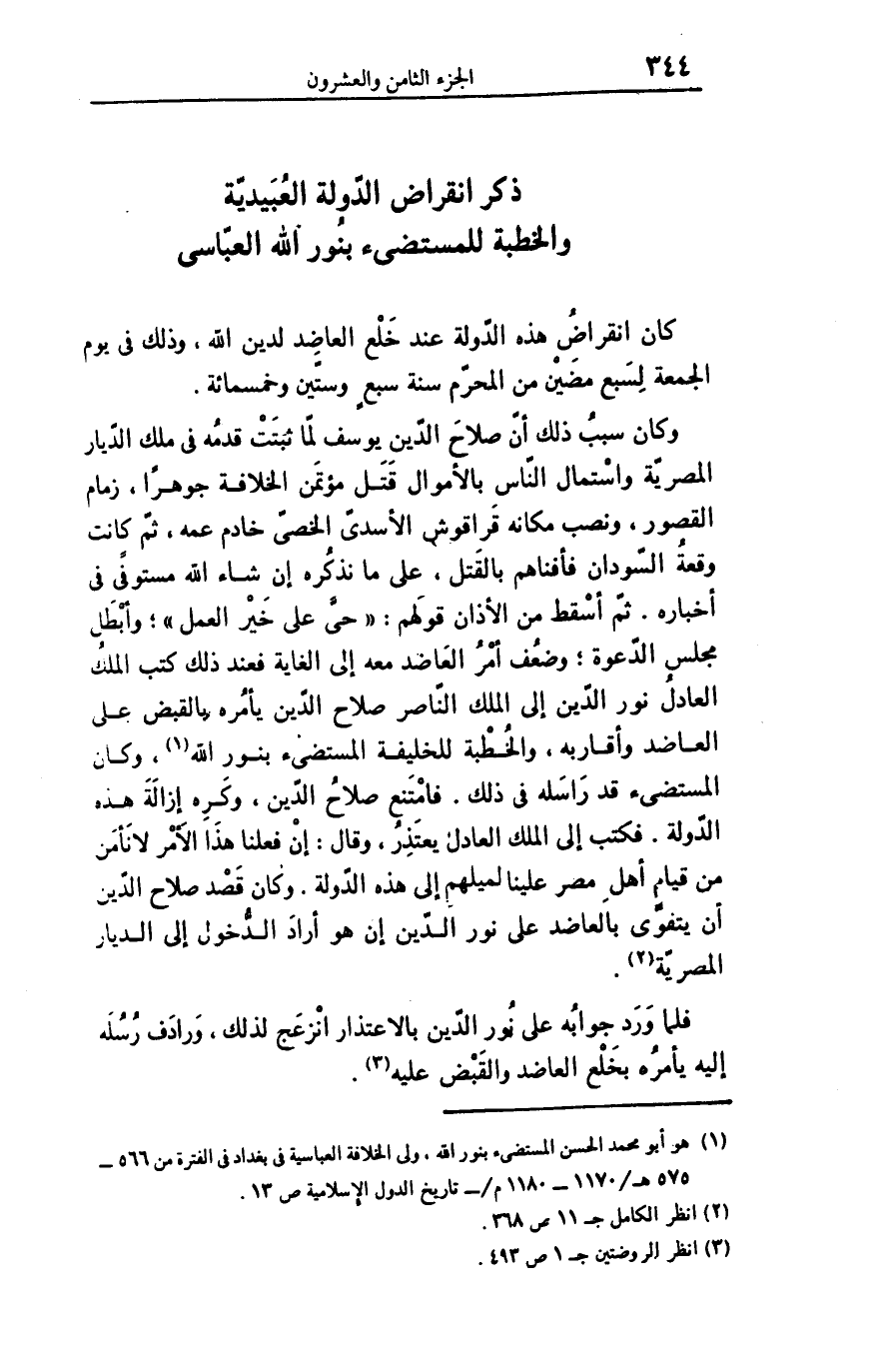 ذكر انقراض الدّولة العبيديّة والخطبة للمستضىء بنور الله العبّاسى