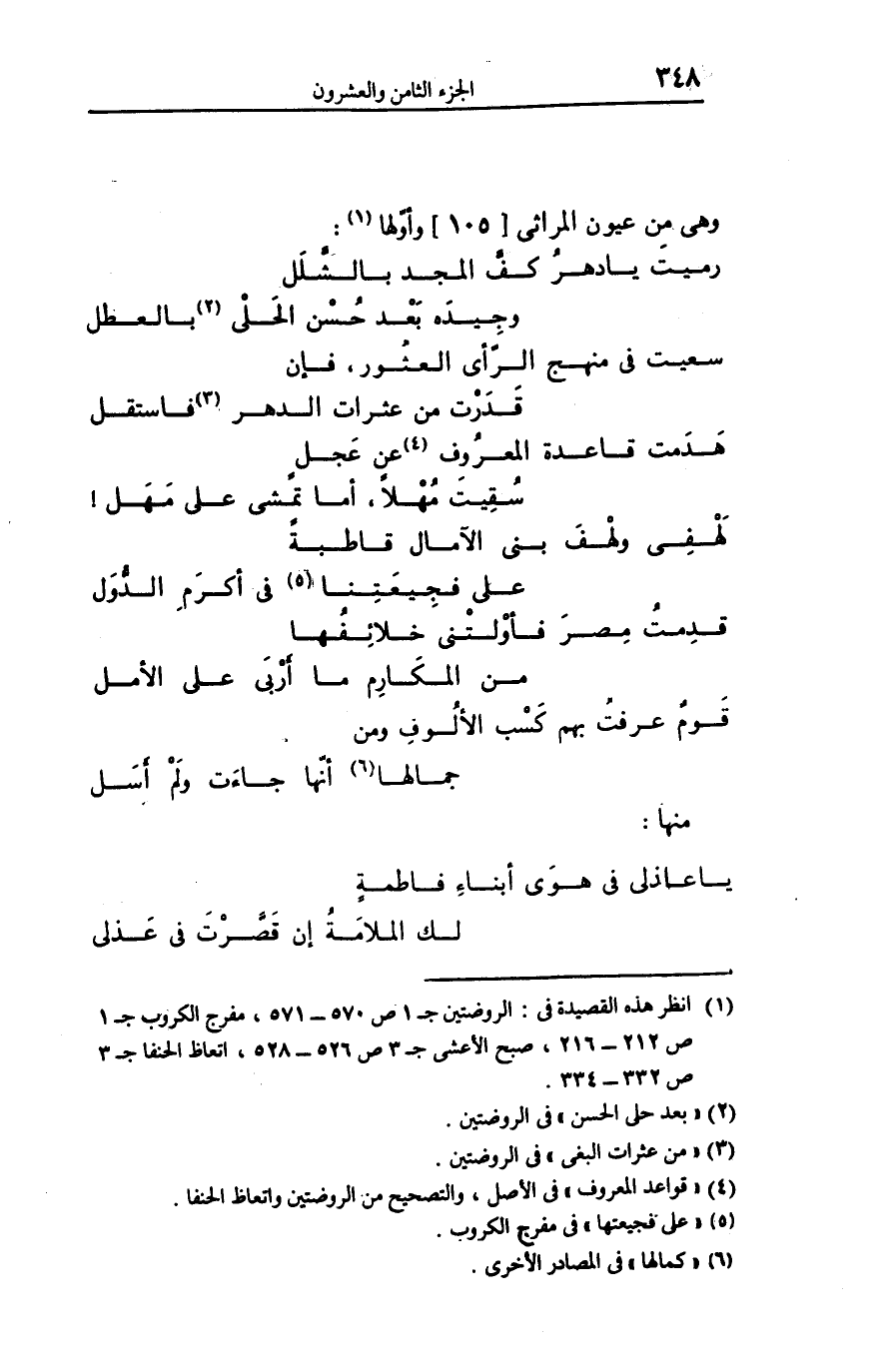 رميت يا دهر كفّ المجد بالشّلل ... وجيده بعد حسن الحلى «2» بالعطل