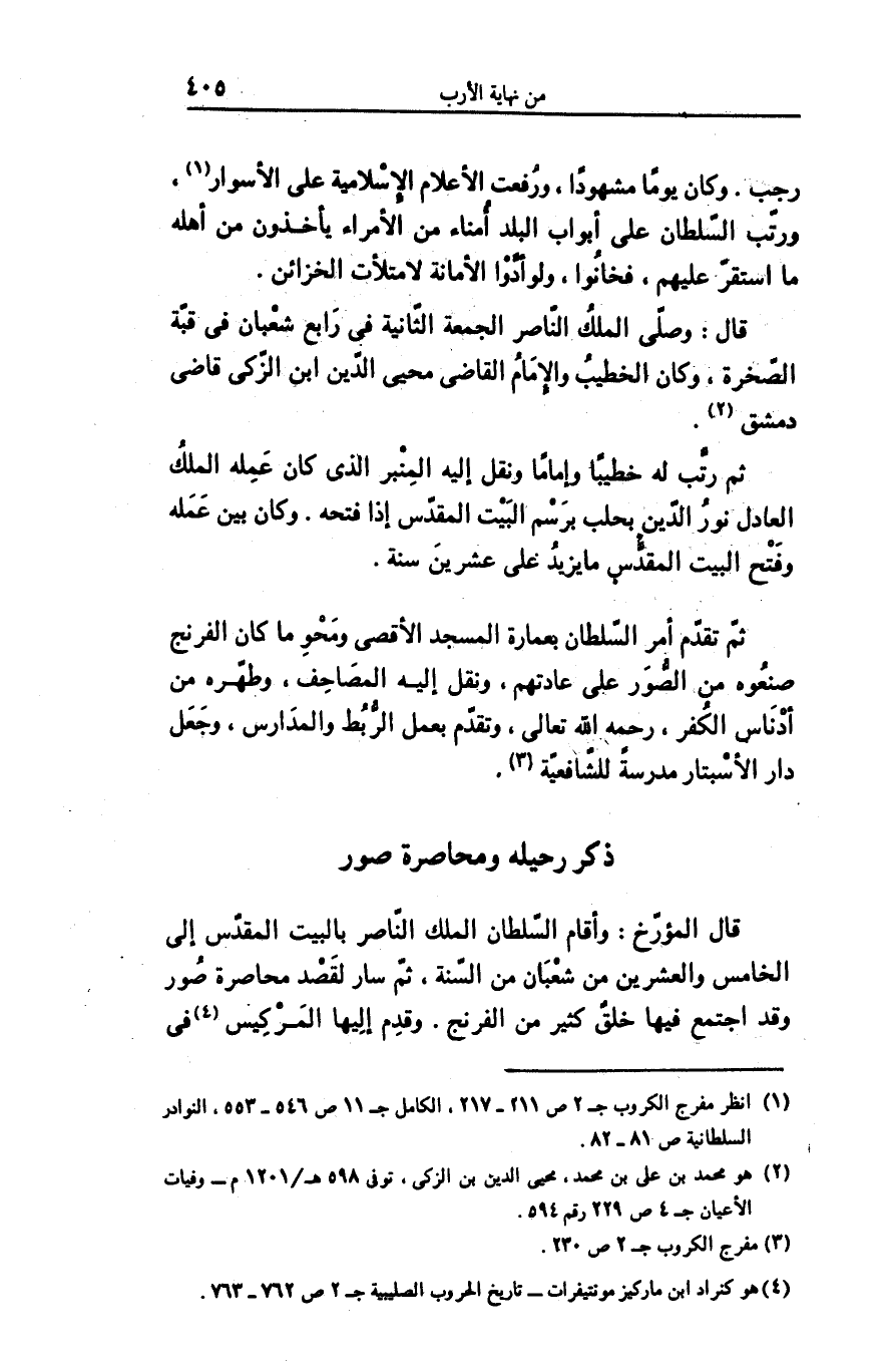 قال المؤرّخ: وأقام السّلطان الملك النّاصر بالبيت المقدّس إلى الخامس والعشرين من شعبان من السّنة، ثمّ سار لقصد محاصرة صور وقد اجتمع فيها خلق كثير من الفرنج. وقدم إليها المركيس «4» فى