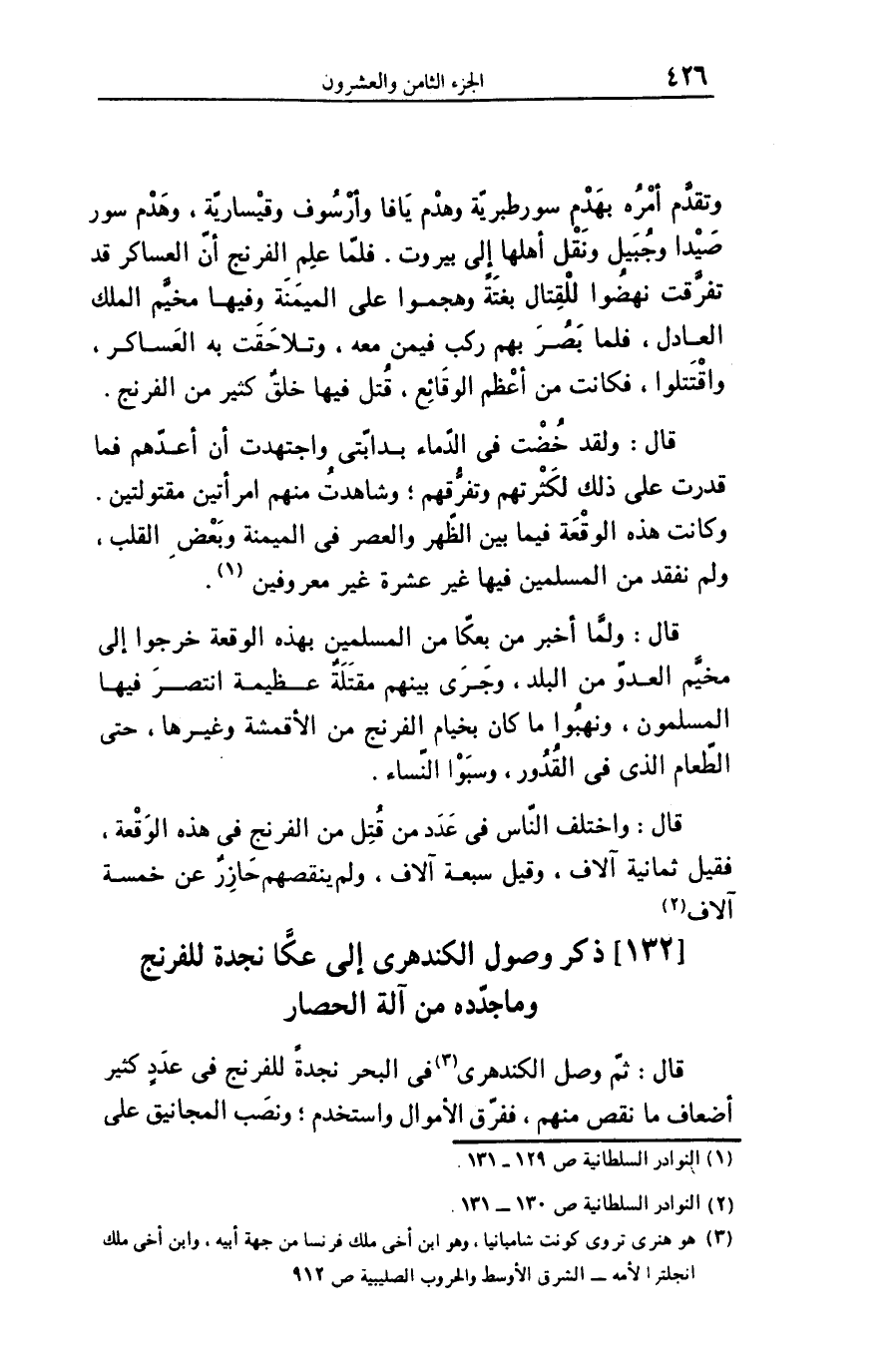 [132] ذكر وصول الكندهرى إلى عكّا نجدة للفرنج وما جدّده من آلة الحصار