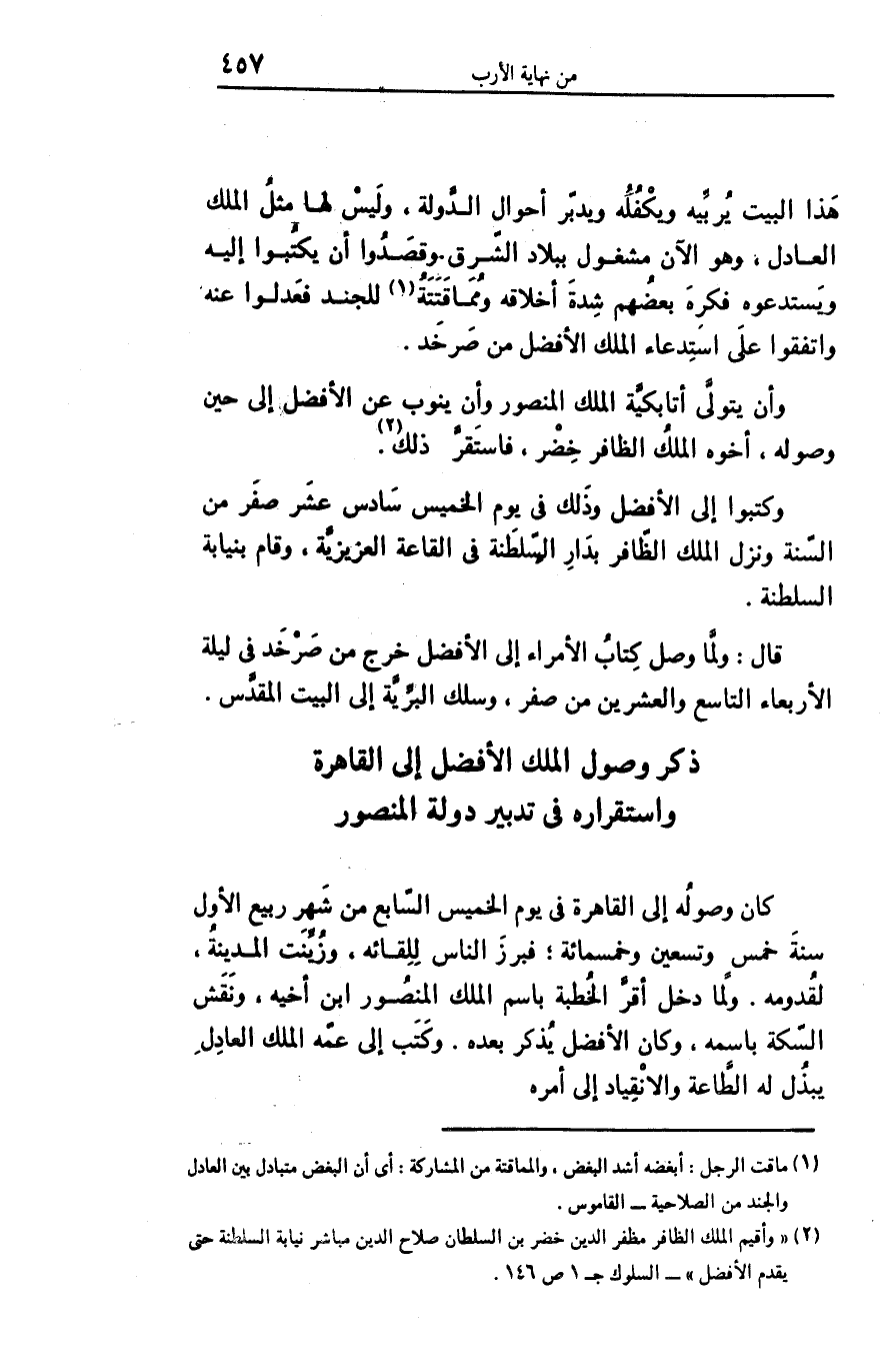 ذكر وصول الملك الأفضل إلى القاهرة واستقراره فى تدبير دولة المنصور
