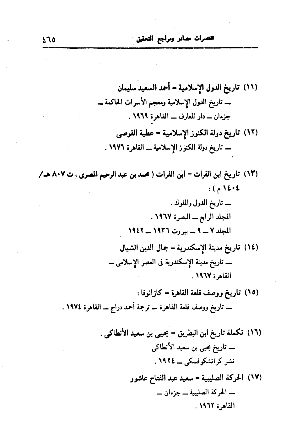- تاريخ الدول الإسلامية ومعجم الأسرات الحاكمة- جزءان- دار المعارف- القاهرة 1969.