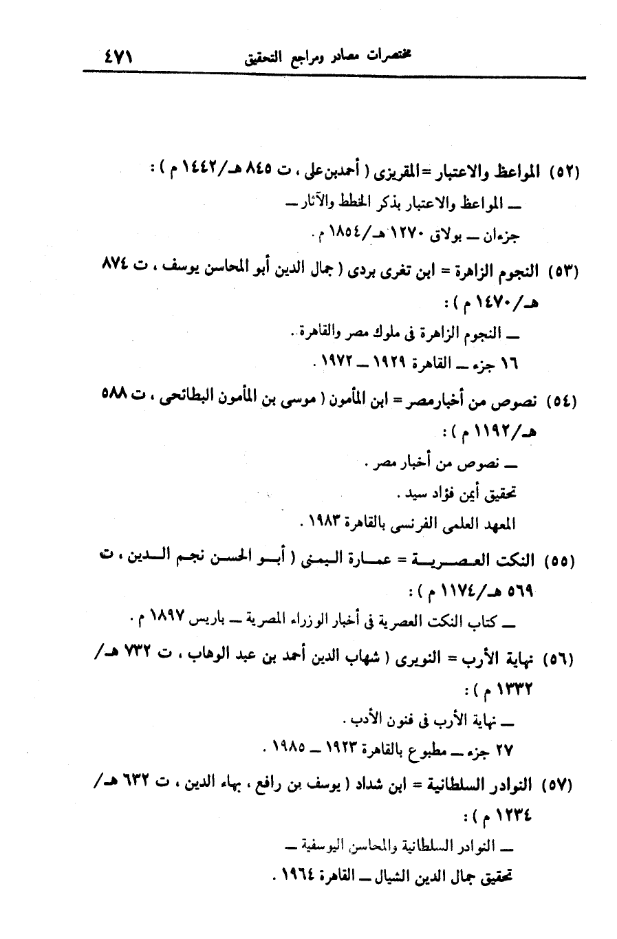 (52) المواعظ والاعتبار- المقريزى (أحمد بن على، ت 845 هـ/ 1442 م) :