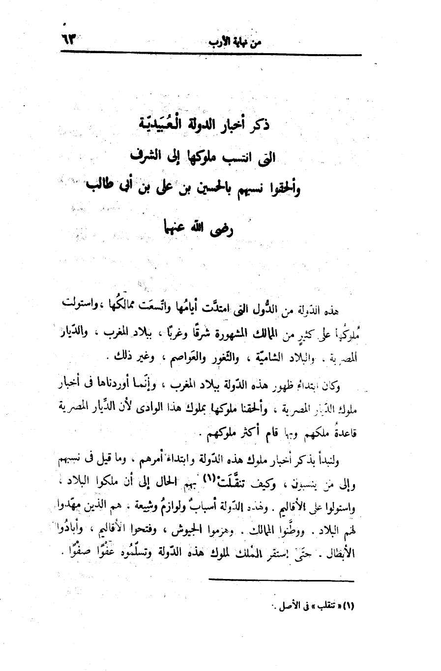 ذكر أخبار الدولة العبيديّة التى انتسب ملوكها إلى الشرف وألحقوا نسبهم بالحسين بن على بن أبى طالب رضى الله عنهما