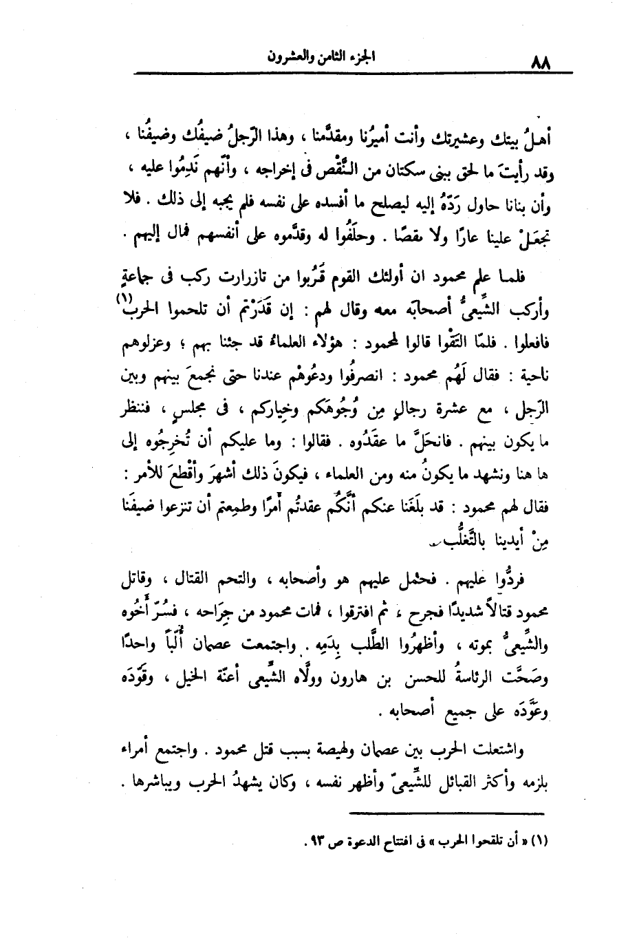 فلما علم محمود ان أولئك القوم قربوا من تازرارت ركب فى جماعة وأركب الشّيعىّ أصحابه معه وقال لهم: إن قدرتم أن تلحموا الحرب «1» فافعلوا. فلمّا التقوا قالوا لمحمود: هؤلاء العلماء قد جئنا بهم؛ وعزلوهم ناحية: فقال لهم محمود: انصرفوا ودعوهم عندنا حتى نجمع بينهم وبين الرّجل، مع عشرة رجال من وجوهكم وخياركم، فى مجلس، فننظر ما يكون بينهم. فانحلّ ما عقدوه. فقالوا: وما عليكم أن تخرجوه إلى هاهنا ونشهد ما يكون منه ومن العلماء، فيكون ذلك أشهر وأقطع للأمر: