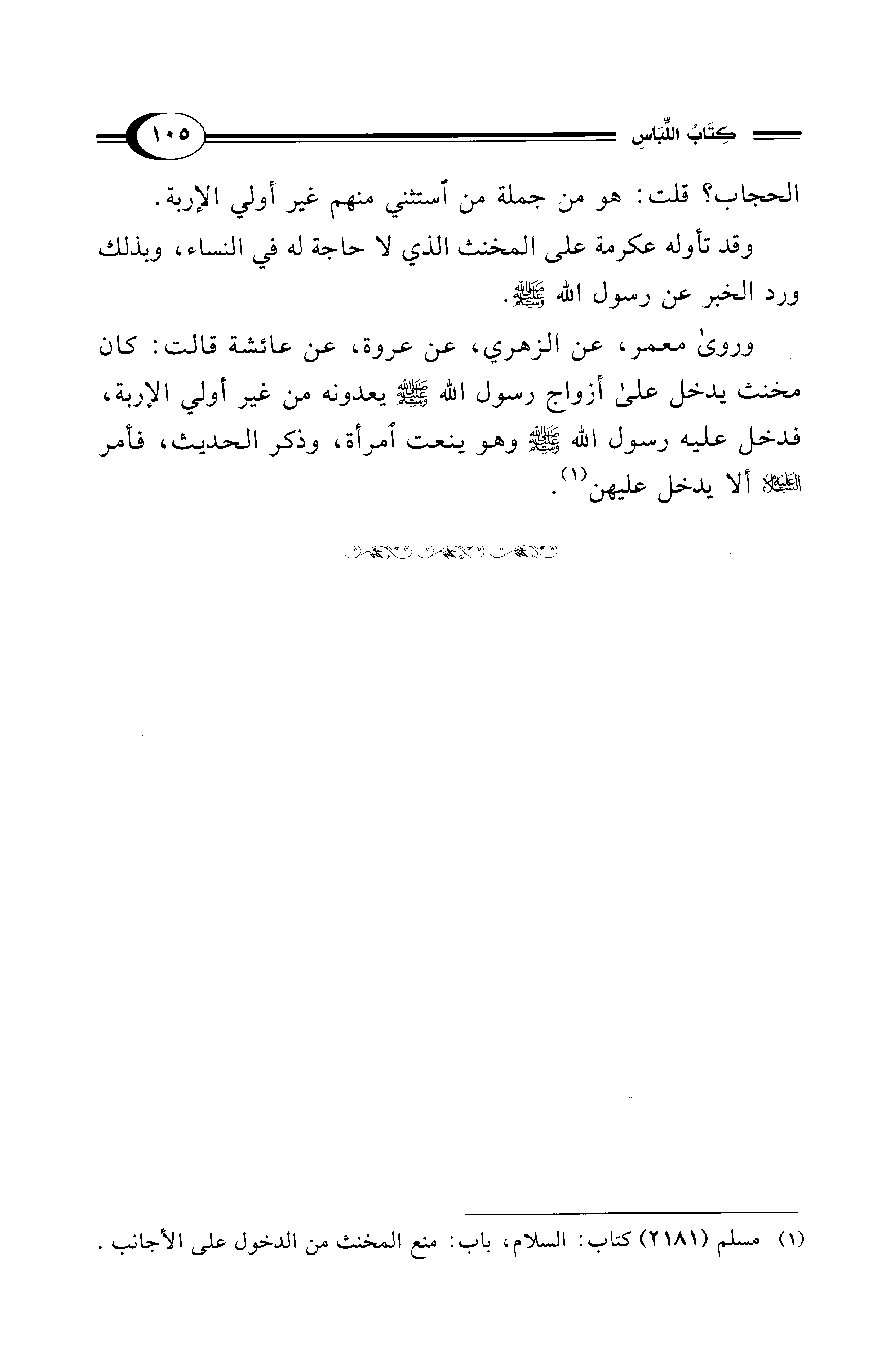 (¬1) مسلم (2181) كتاب: السلام، باب: منع المخنث من الدخول على الأجانب.