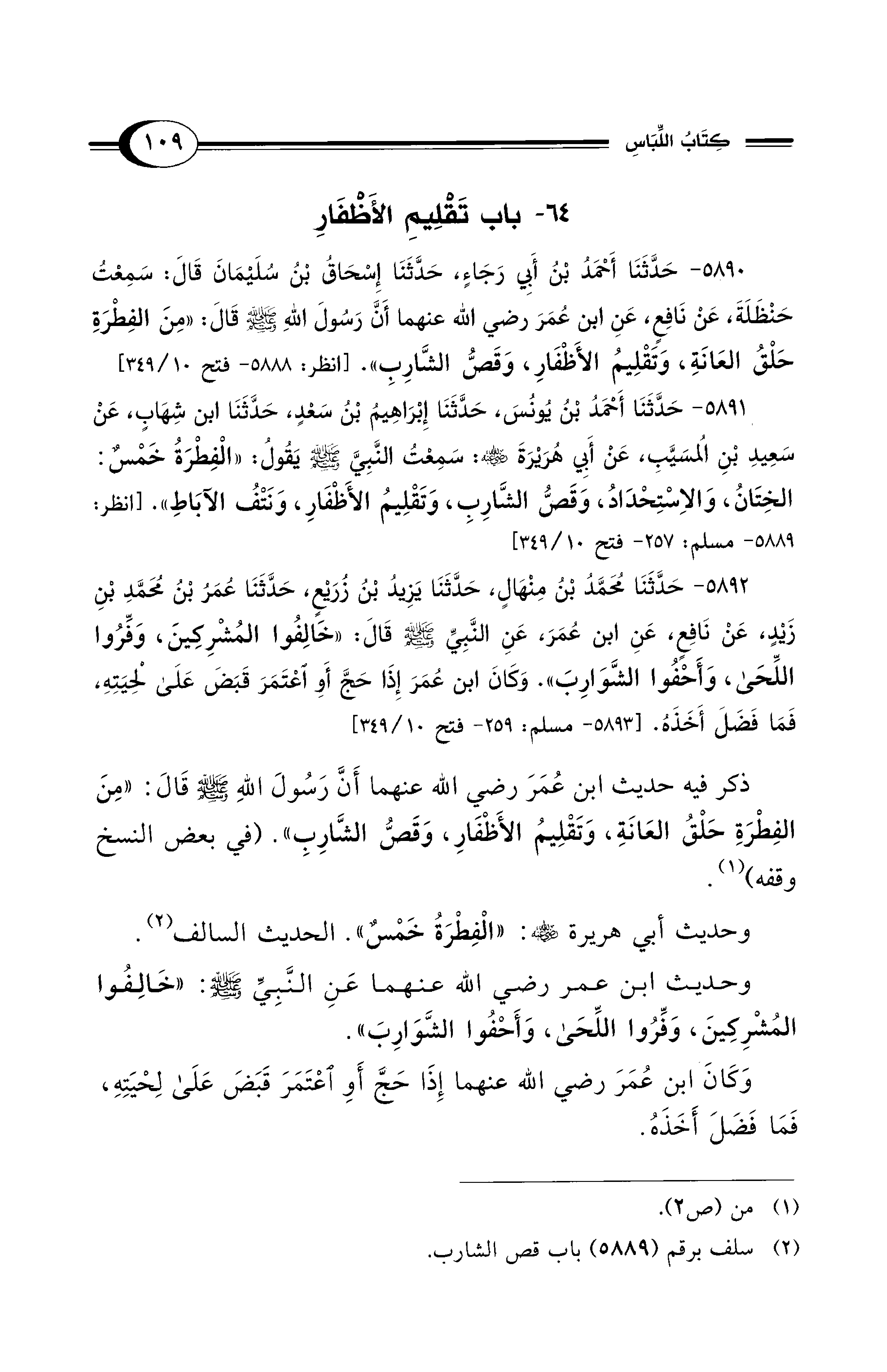 (¬2) سلف برقم (5889) باب قص الشارب.