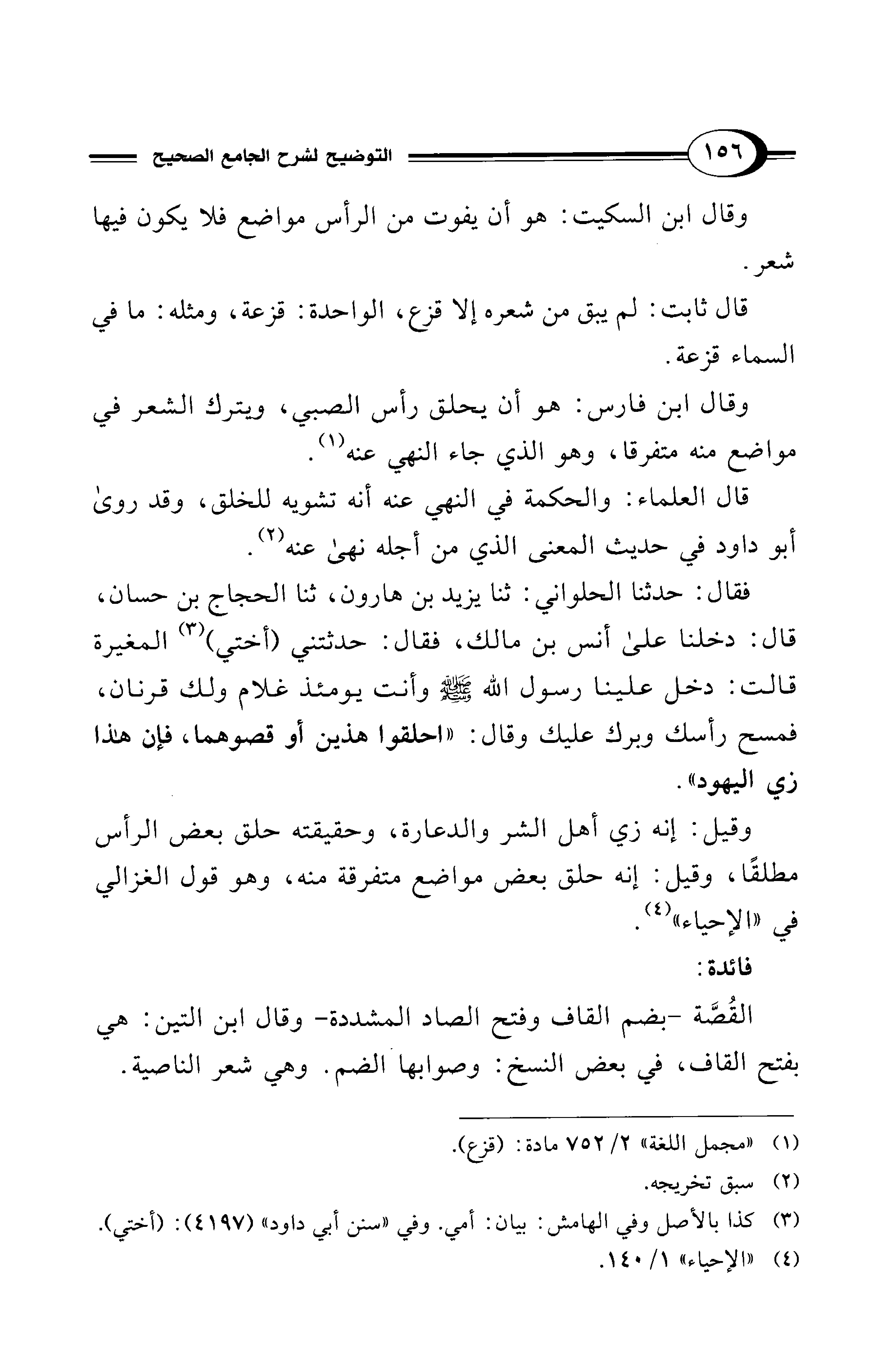 وقيل: إنه زي أهل الشر والدعارة، وحقيقته حلق بعض الرأس مطلقًا، وقيل: إنه حلق بعض مواضع متفرقة منه، وهو قول الغزالي في "الإحياء" (¬4).