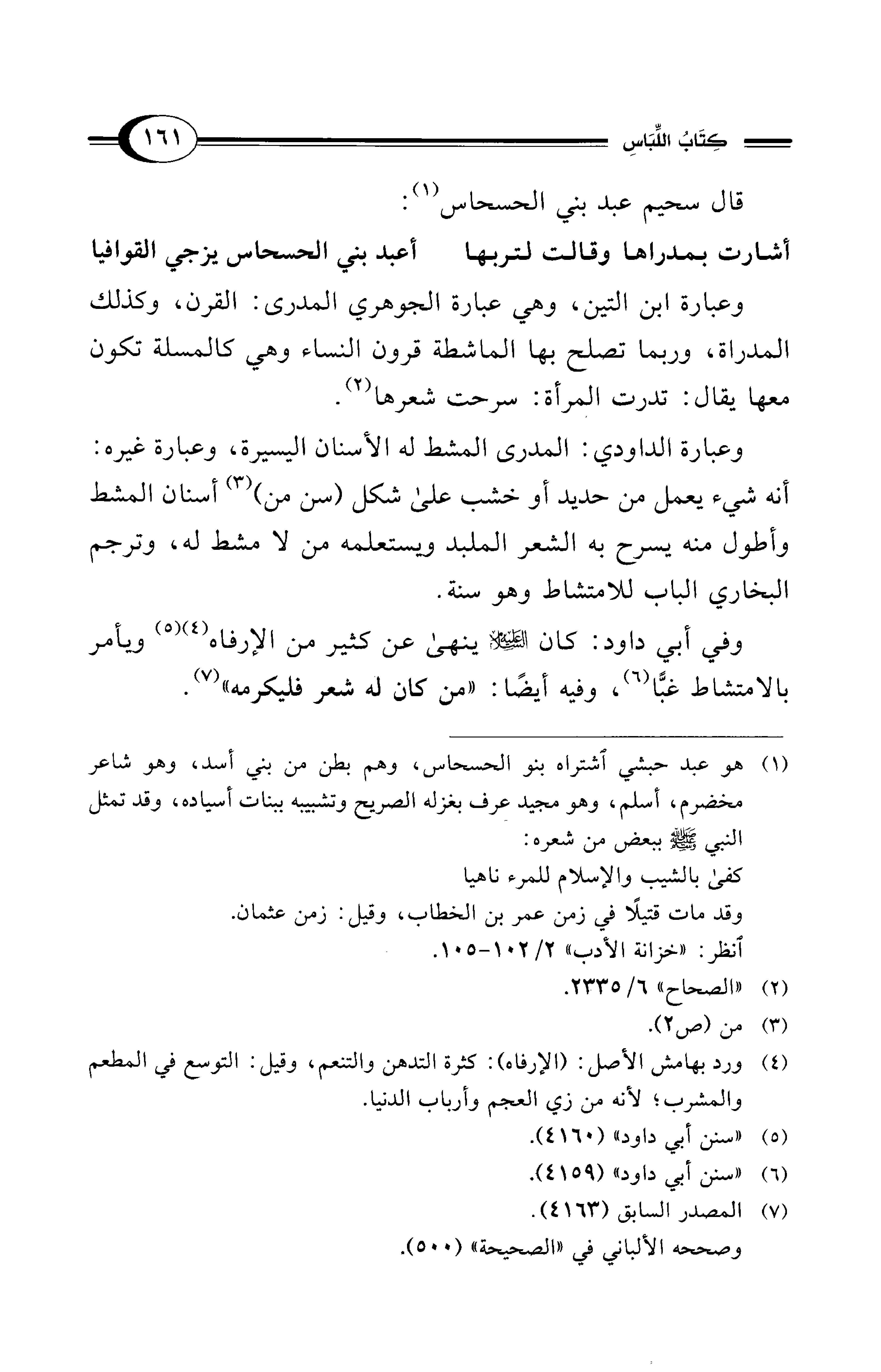 وفي أبي داود: كان - عليه السلام - ينهى عن كثير من الإرفاه (¬4) (¬5) ويأمر بالامتشاط غبًّا (¬6)، وفيه أيضًا: "من كان له شعر فليكرمه" (¬7).