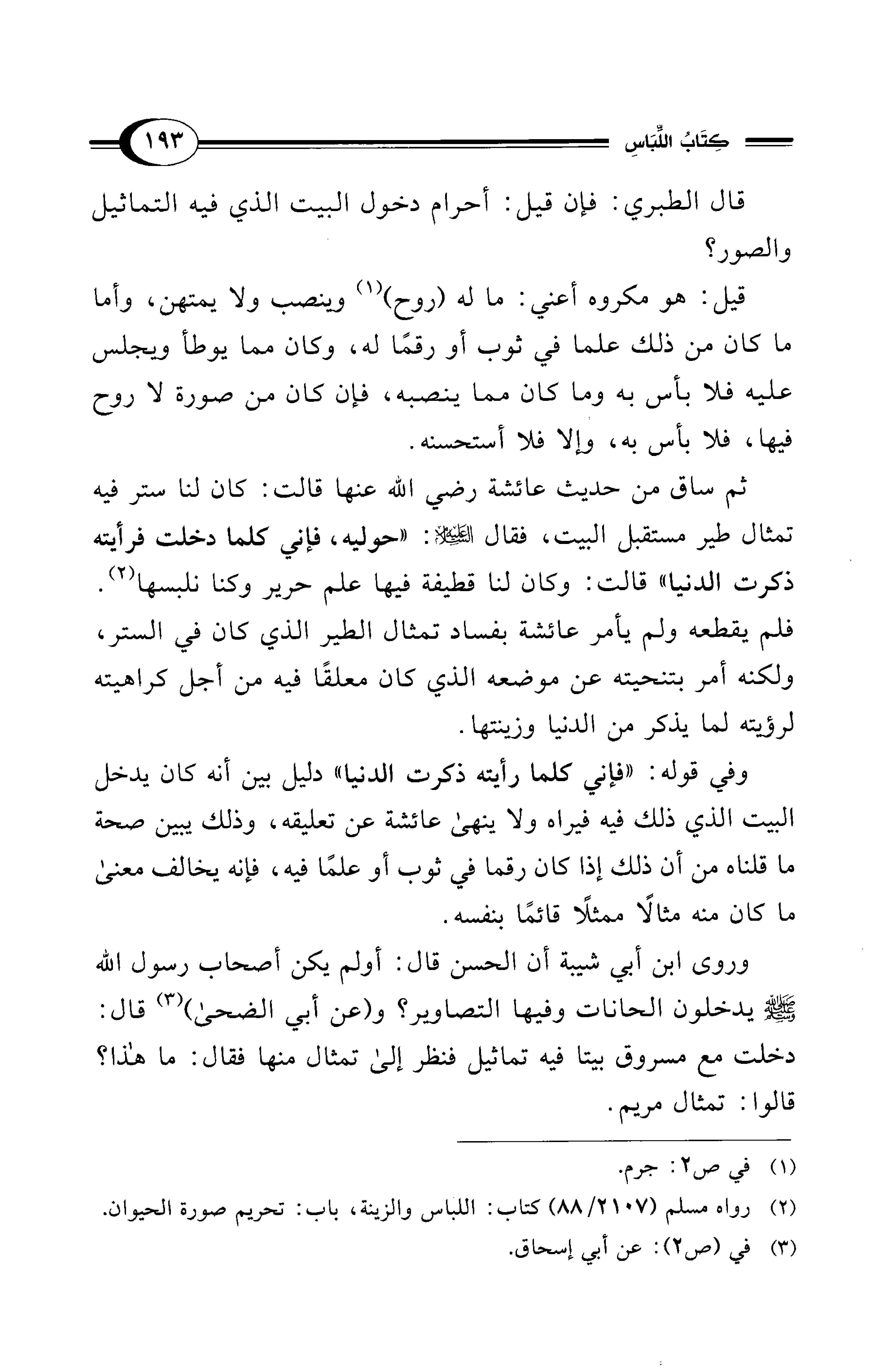 قال الطبري: فإن قيل: أحرام دخول البيت الذي فيه التماثيل والصور؟
