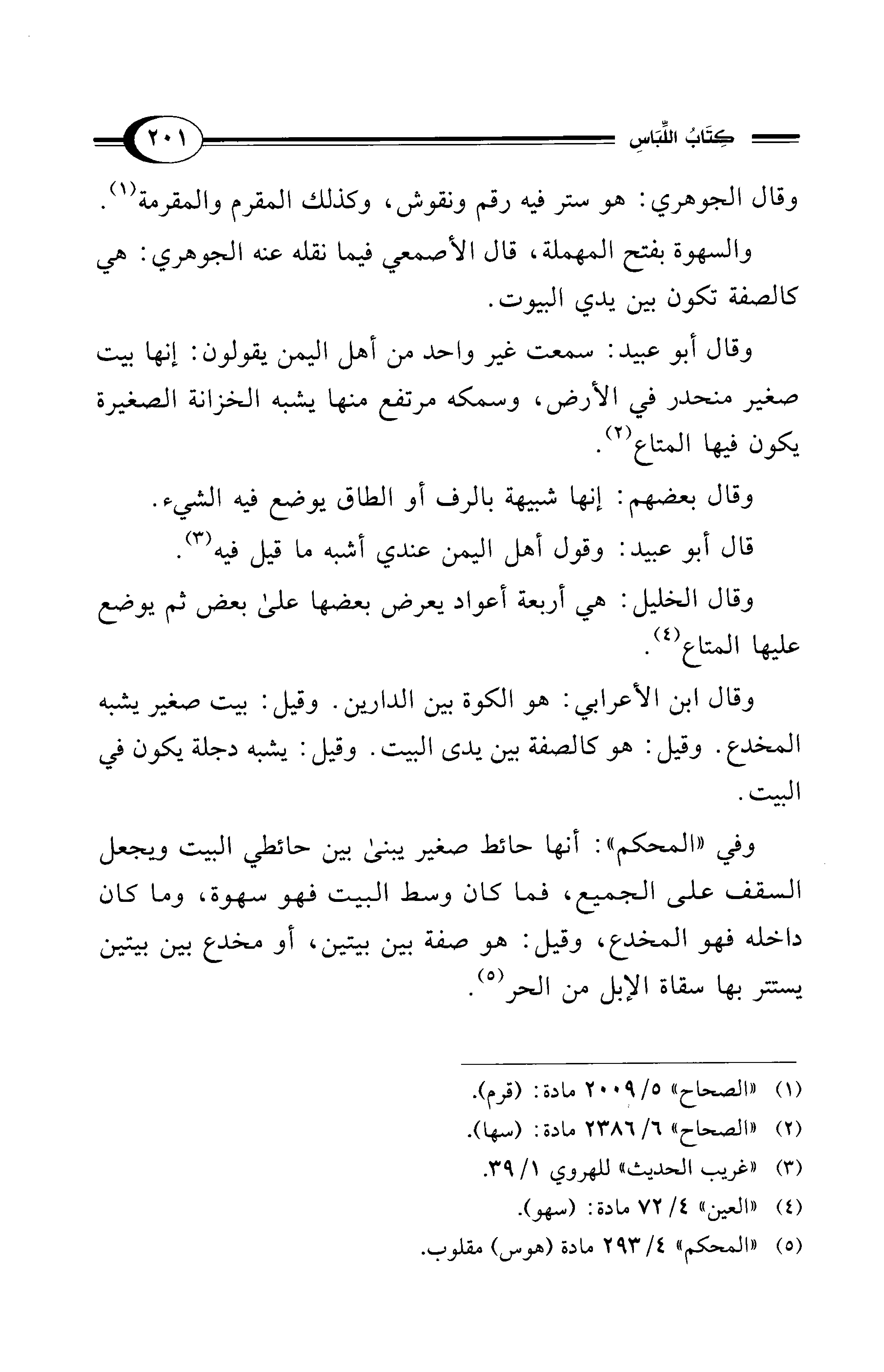 وفي "المحكم": أنها حائط صغير يبنى بين حائطي البيت ويجعل السقف على الجميع، فما كان وسط البيت فهو سهوة، وما كان داخله فهو المخدع، وقيل: هو صفة بين بيتين، أو مخدع بين بيتين يستتر بها سقاة الإبل من الحر (¬5).