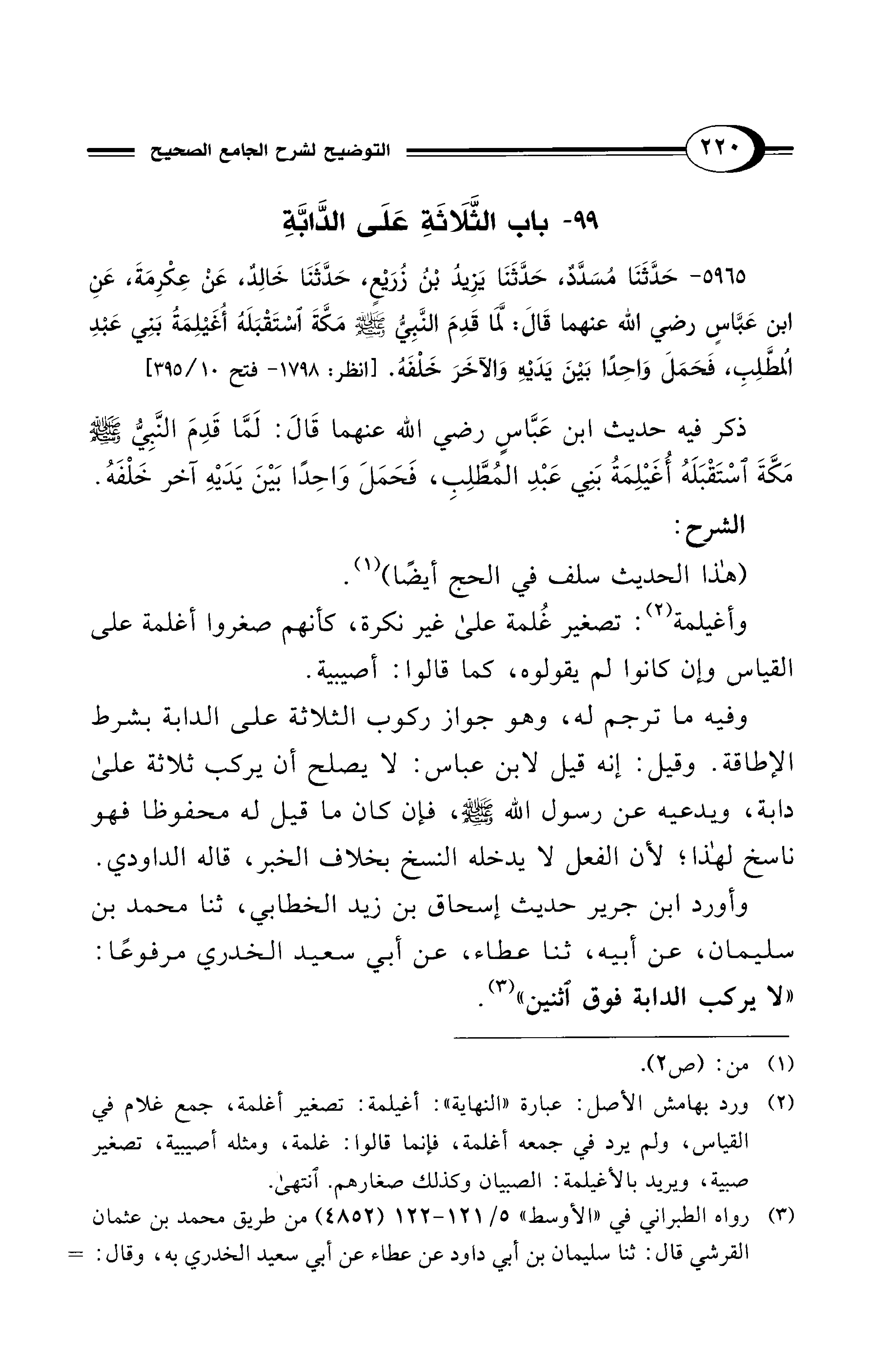 99 - باب الثَّلاَثَةِ عَلَى الدَّابَّةِ