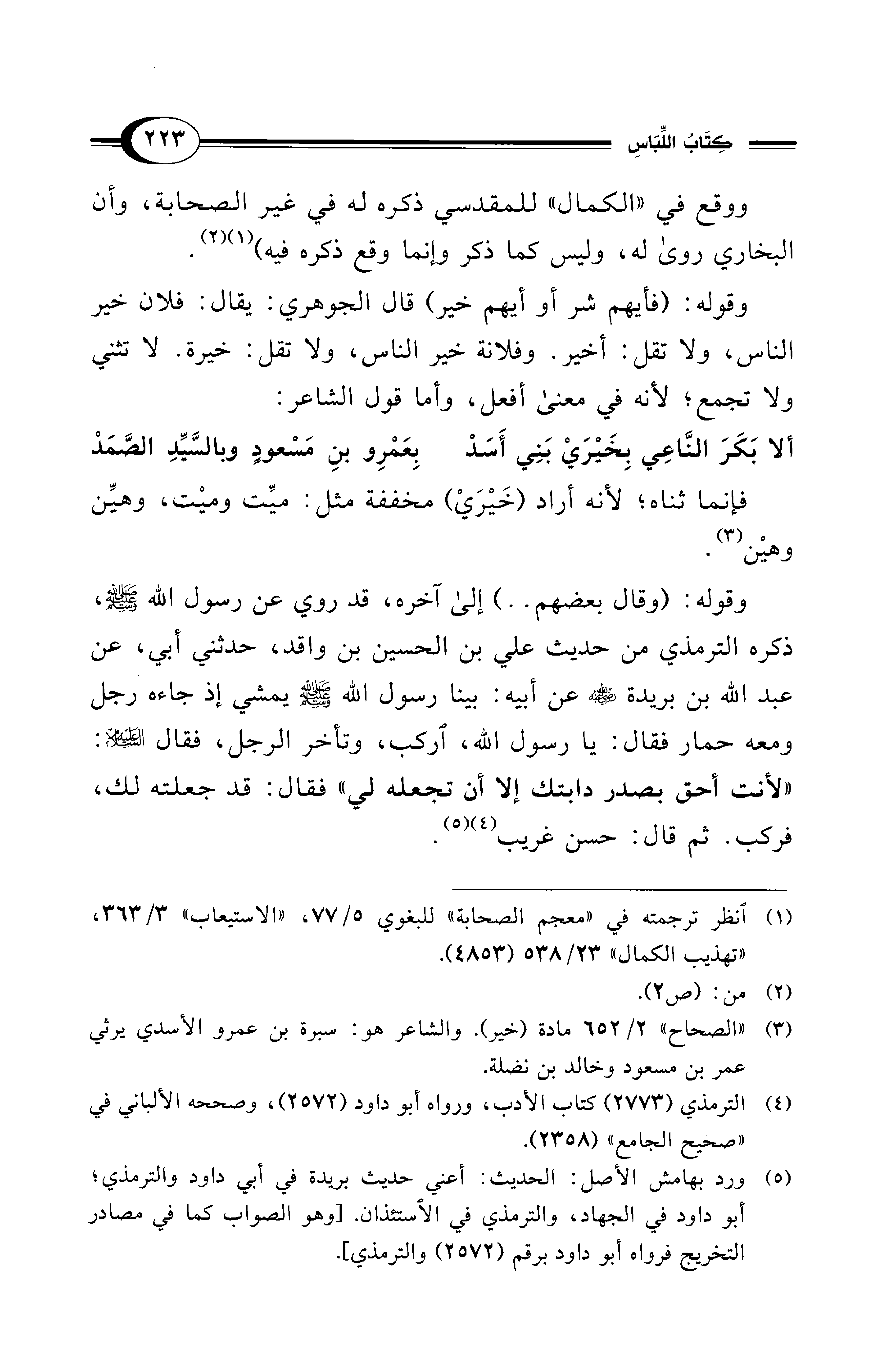 (¬3) "الصحاح" 2/ 652 مادة (خير). والشاعر هو: سبرة بن عمرو الأسدي يرثي عمر بن مسعود وخالد بن نضلة.