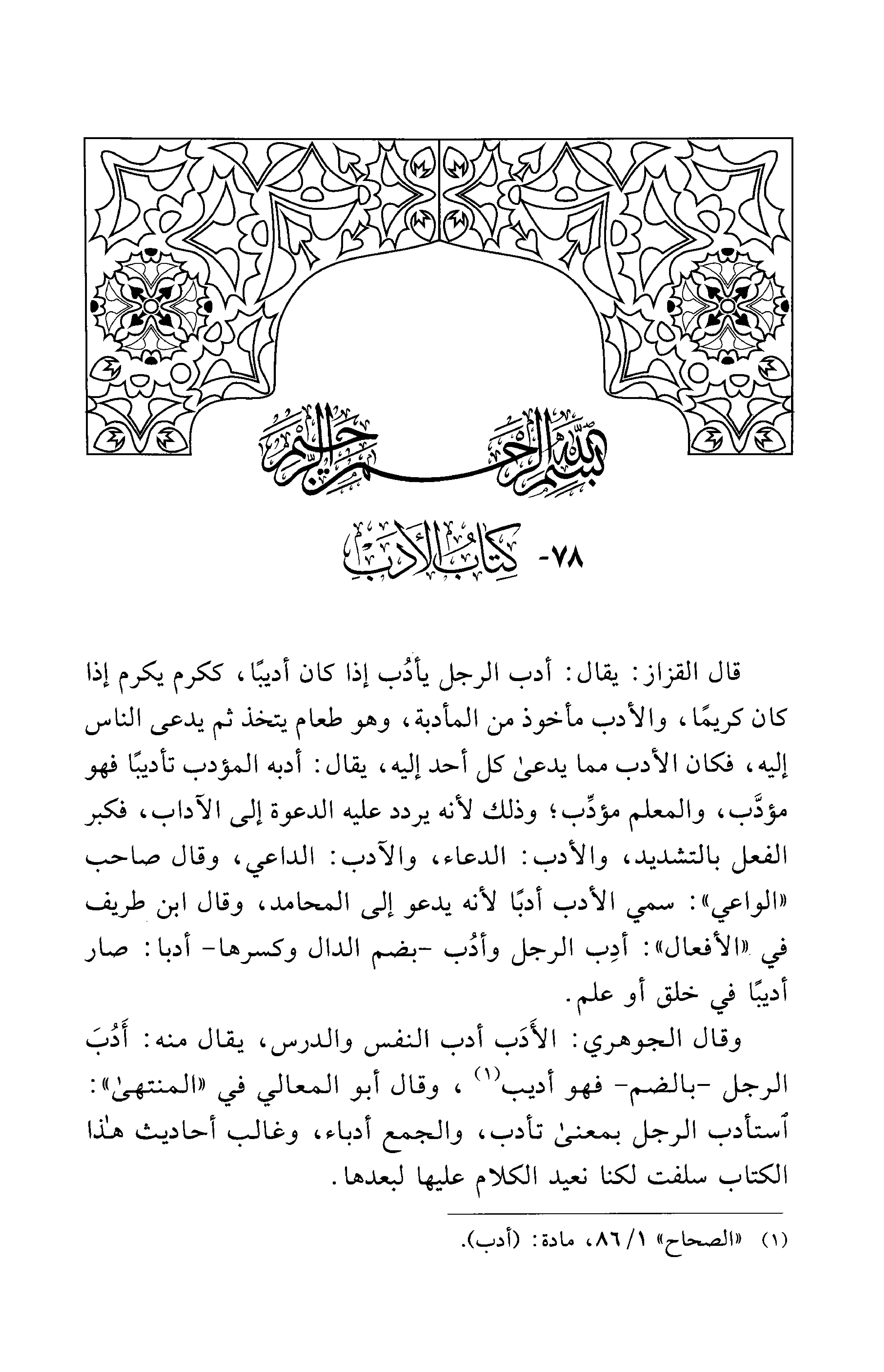 (¬1) "الصحاح" 1/ 86، مادة: (أدب).