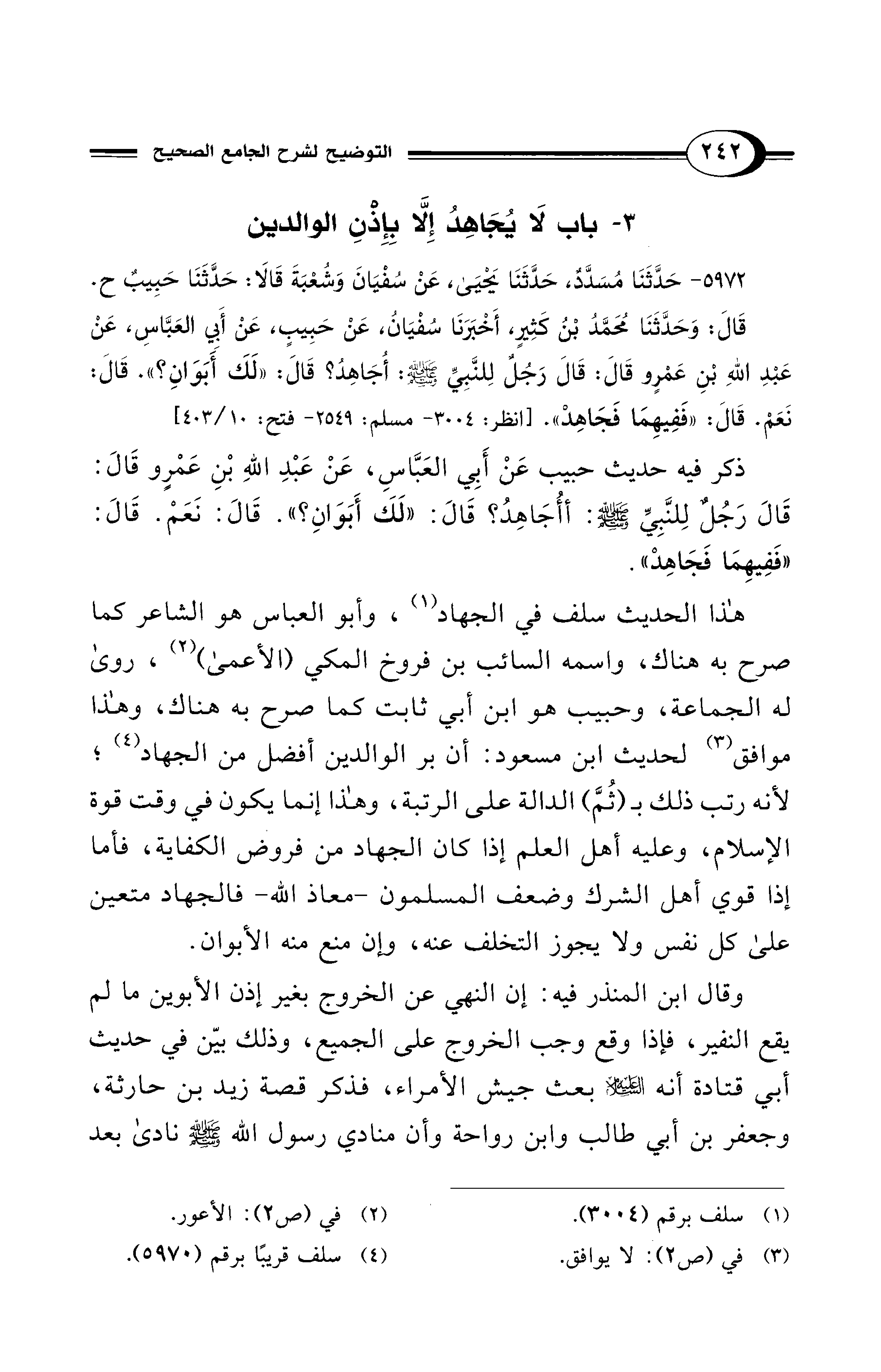 3 - باب لاَ يُجَاهِدُ إِلاَّ بِإِذْنِ الوالدين