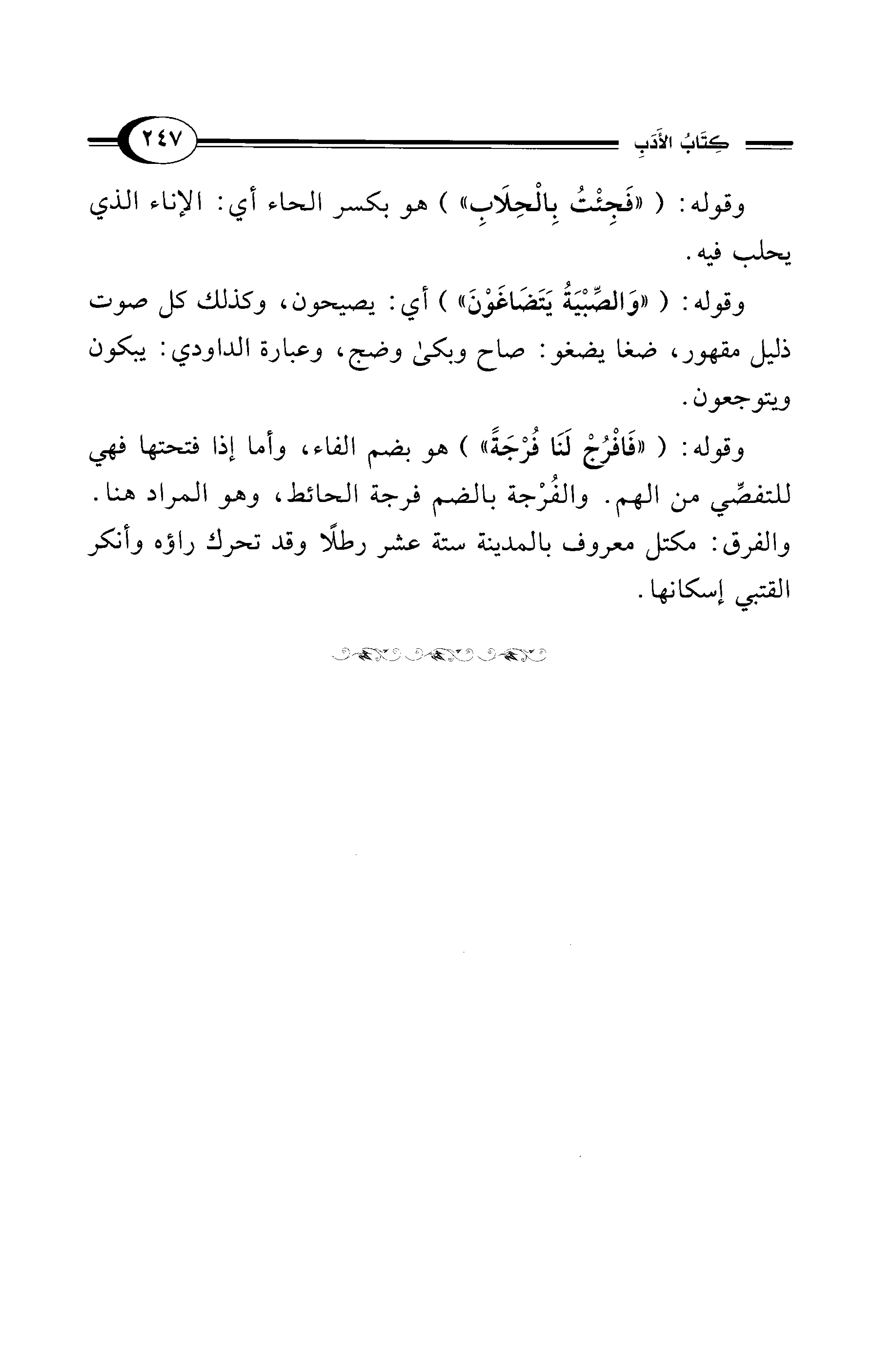 وقوله: ("فَجِئْتُ بِالْحِلَابِ") هو بكسر الحاء أي: الإناء الذي يحلب فيه.