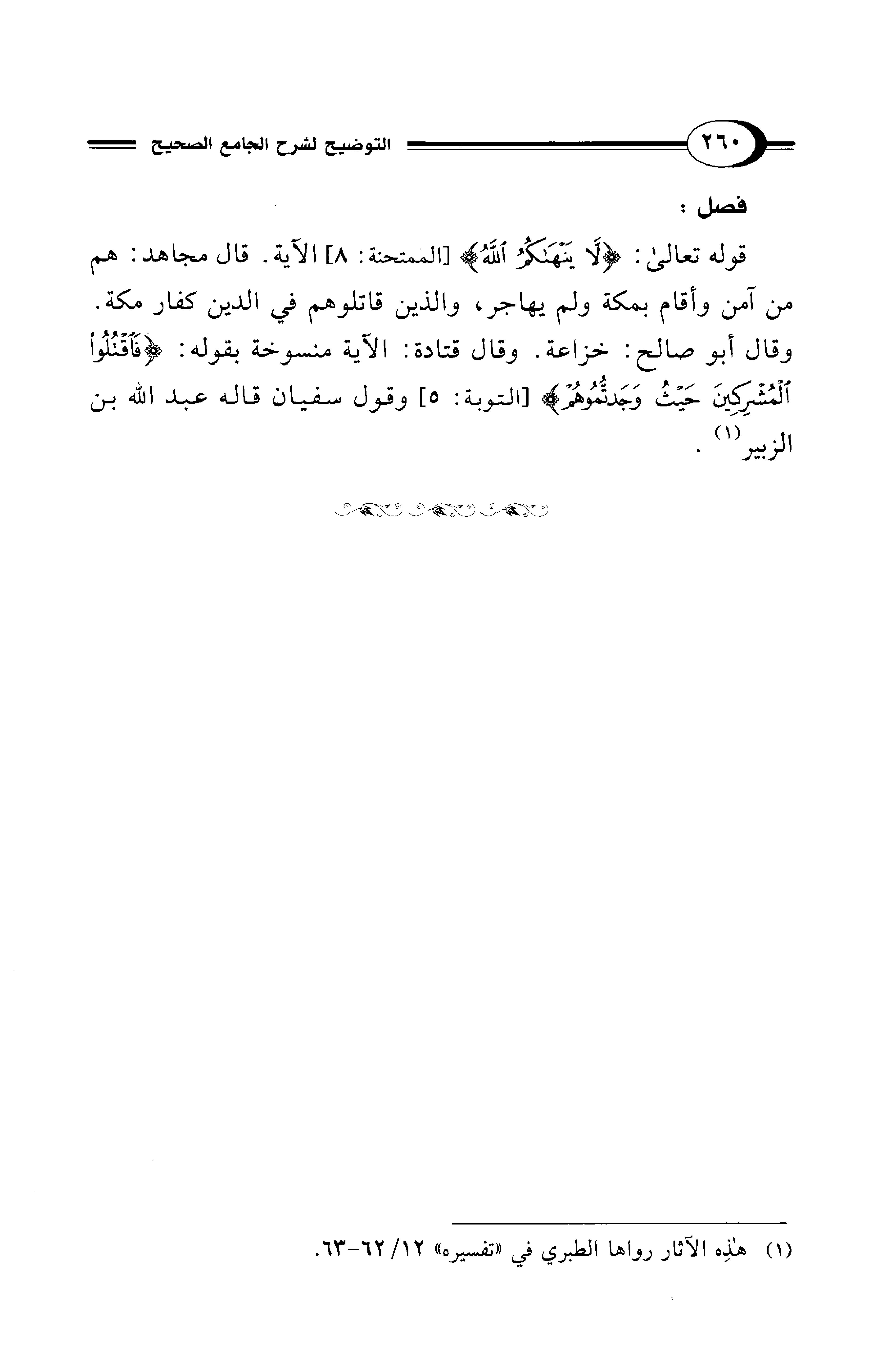قوله تعالى: {لَا يَنْهَاكُمُ اللهُ} [الممتحنة: 8] الآية. قال مجاهد: هم من آمن وأقام بمكة ولم يهاجر، والذين قاتلوهم في الدين كفار مكة. وقال أبو صالح: خزاعة. وقال قتادة: الآية منسوخة بقوله: {فَاقْتُلُوا الْمُشْرِكِينَ حَيْثُ وَجَدْتُمُوهُمْ} [التوبة: 5] وقول سفيان قاله عبد الله بن الزبير (¬1).