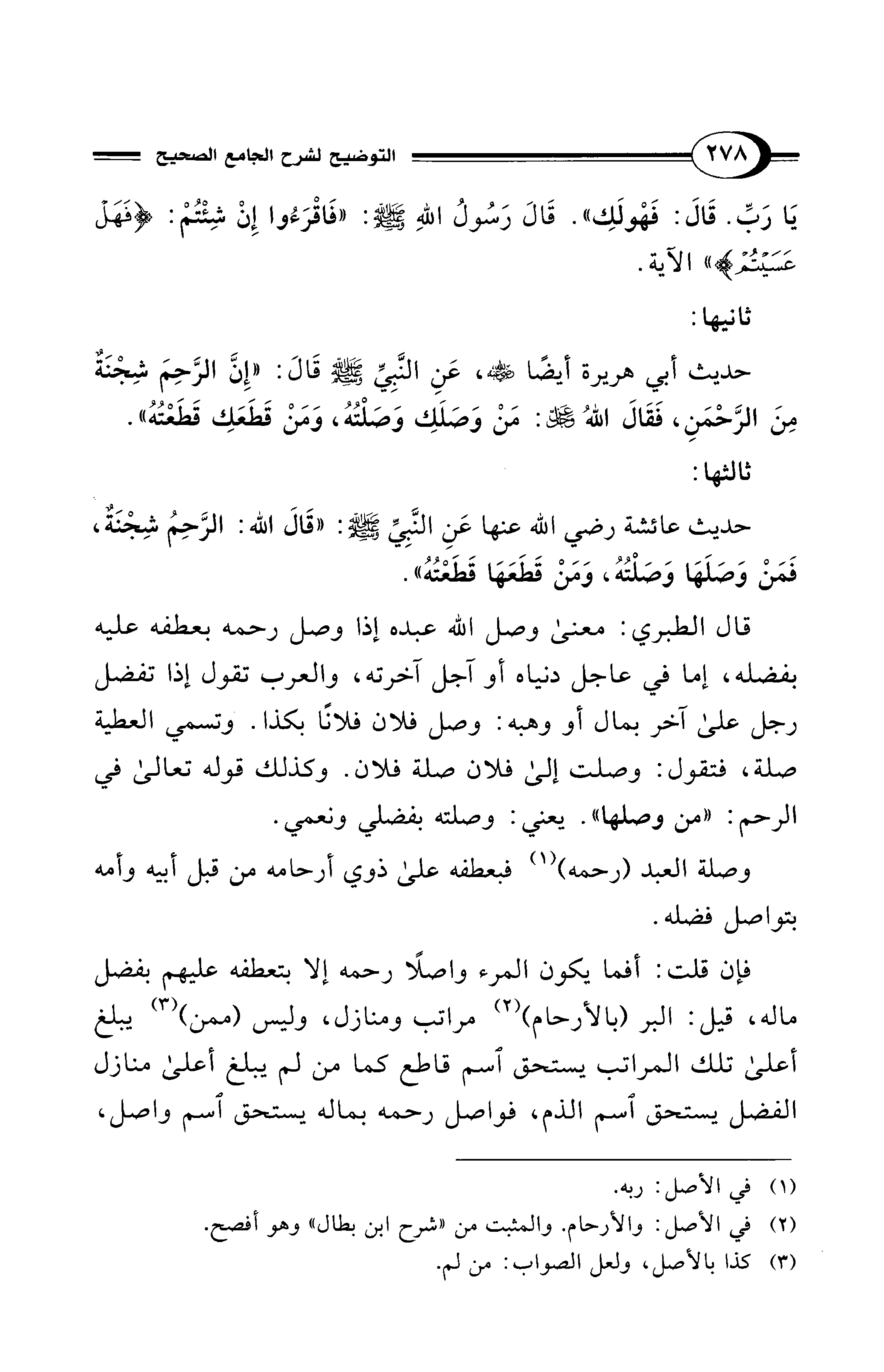 (¬2) في الأصل: والأرحام. والمثبت من "شرح ابن بطال" وهو أفصح.