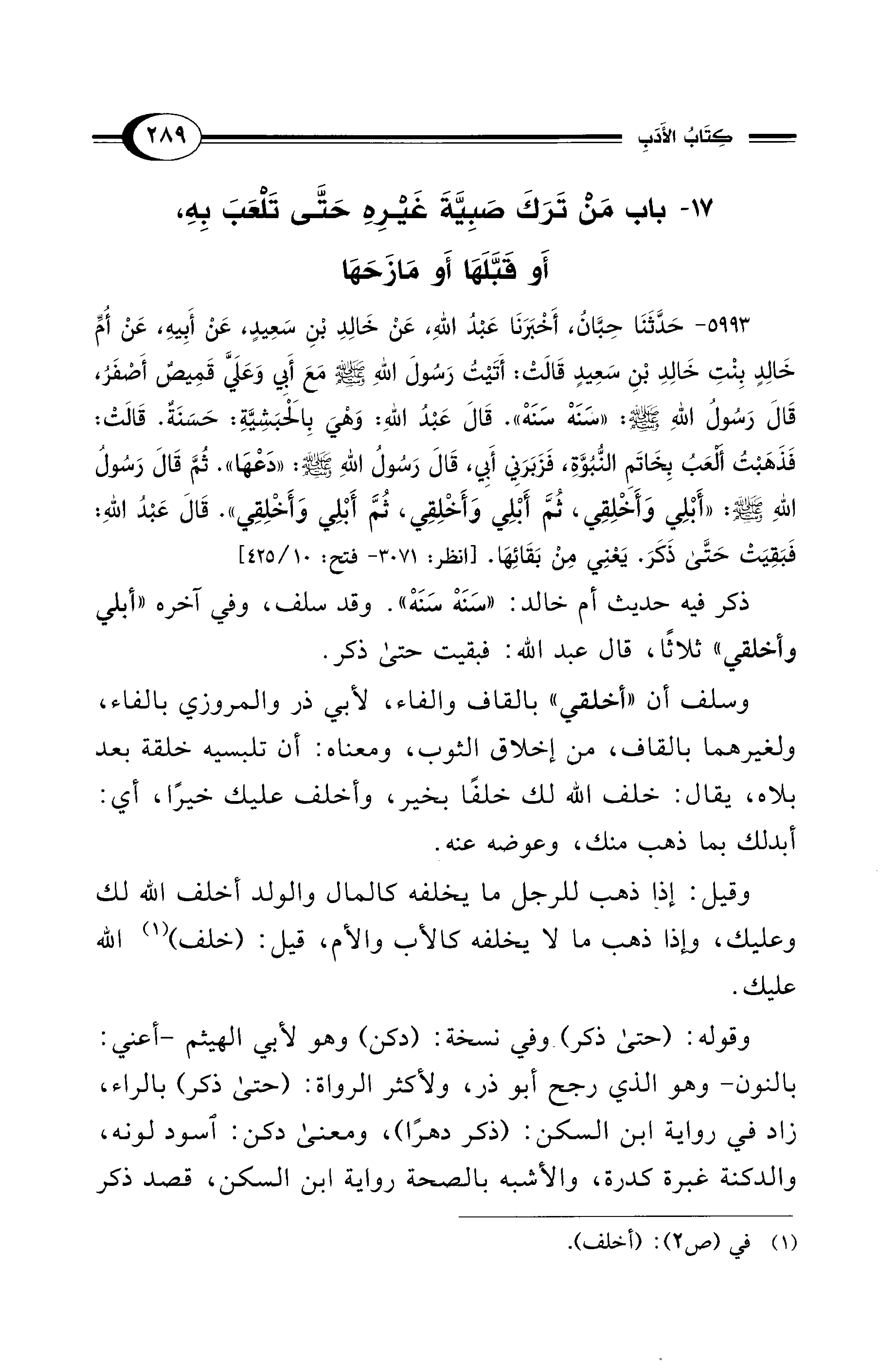 17 - باب مَنْ تَرَكَ صَبِيَّةَ غَيْرِهِ حَتَّى تَلْعَبَ بِهِ، أَو قَبَّلَهَا أَو مَازَحَهَا
