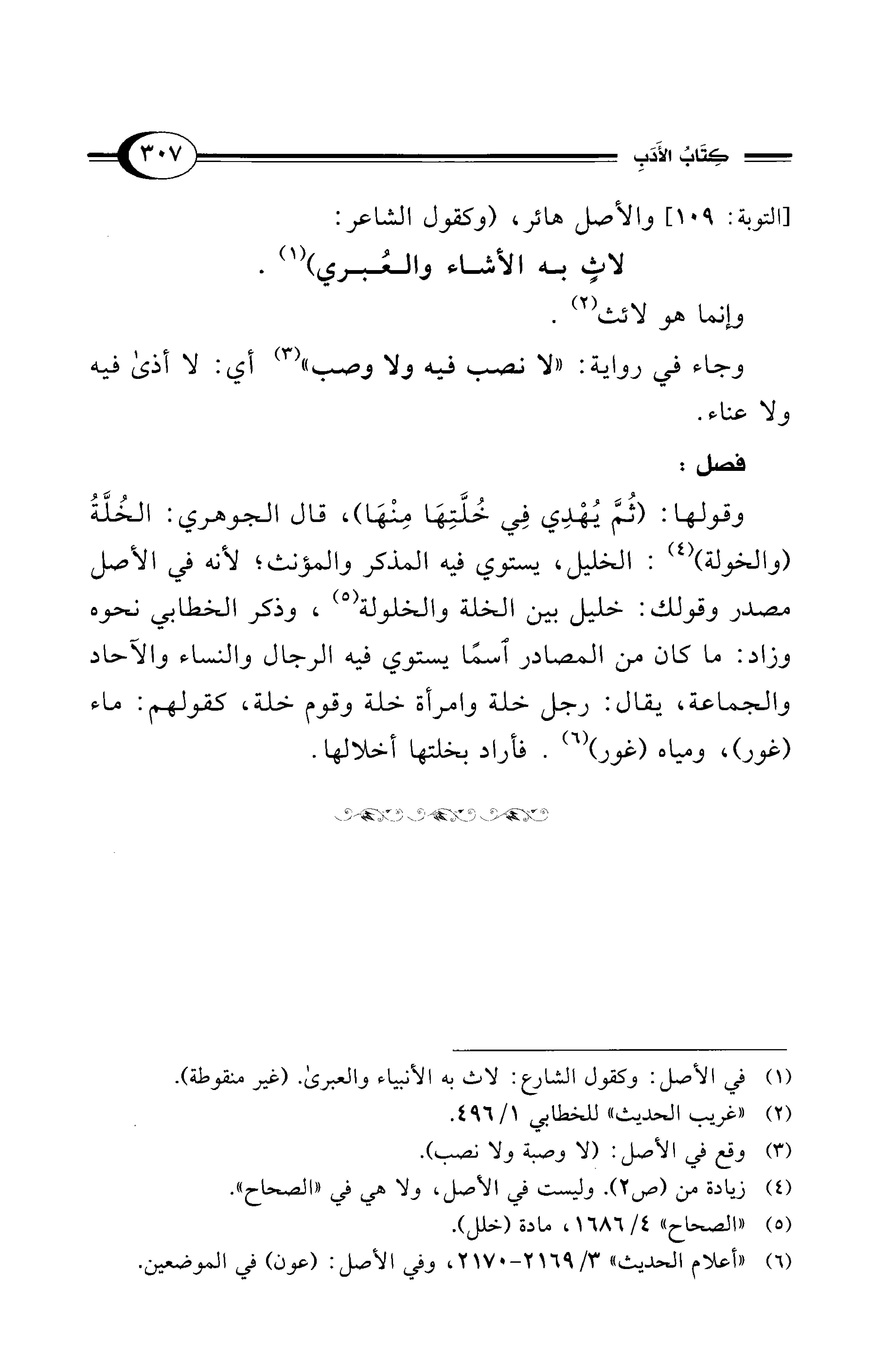 (¬5) "الصحاح" 4/ 1686، مادة (خلل).