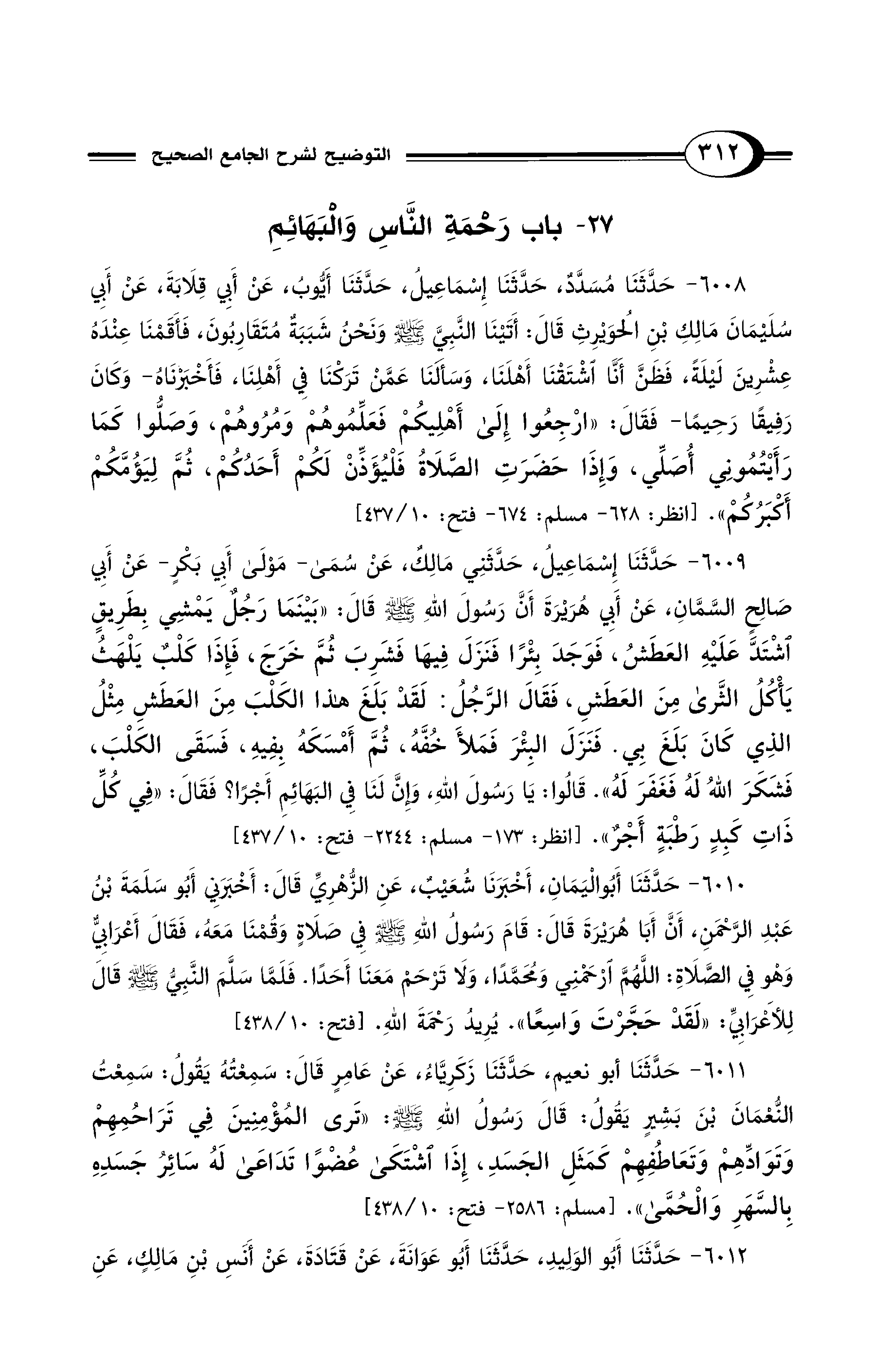 27 - باب رَحْمَةِ النَّاسِ وَالْبَهَائِمِ