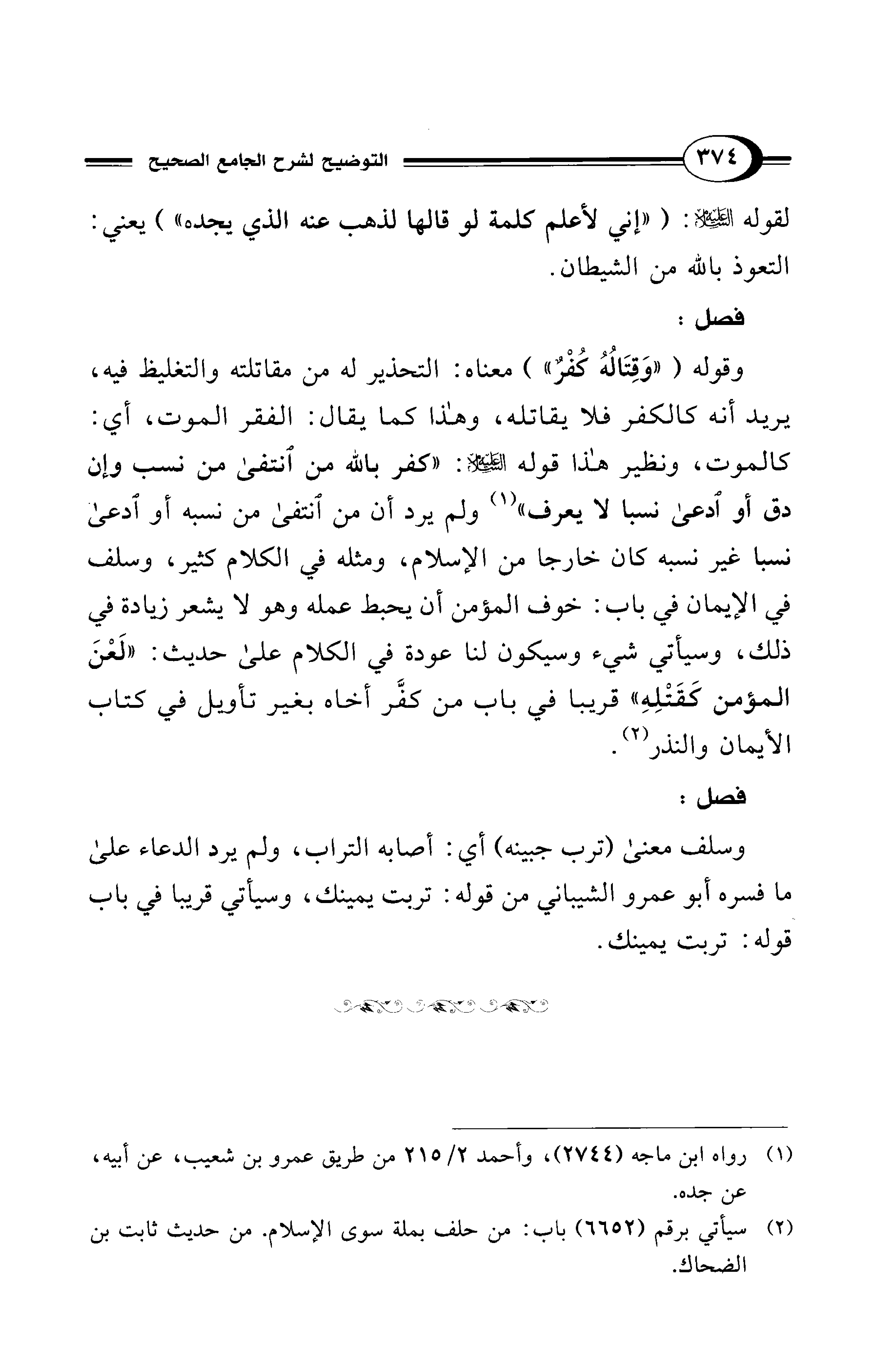 المؤمن كقَتْلِهِ" قريبا في باب من كفَّر أخاه بغير تأويل في كتاب الأيمان والنذر (¬2).