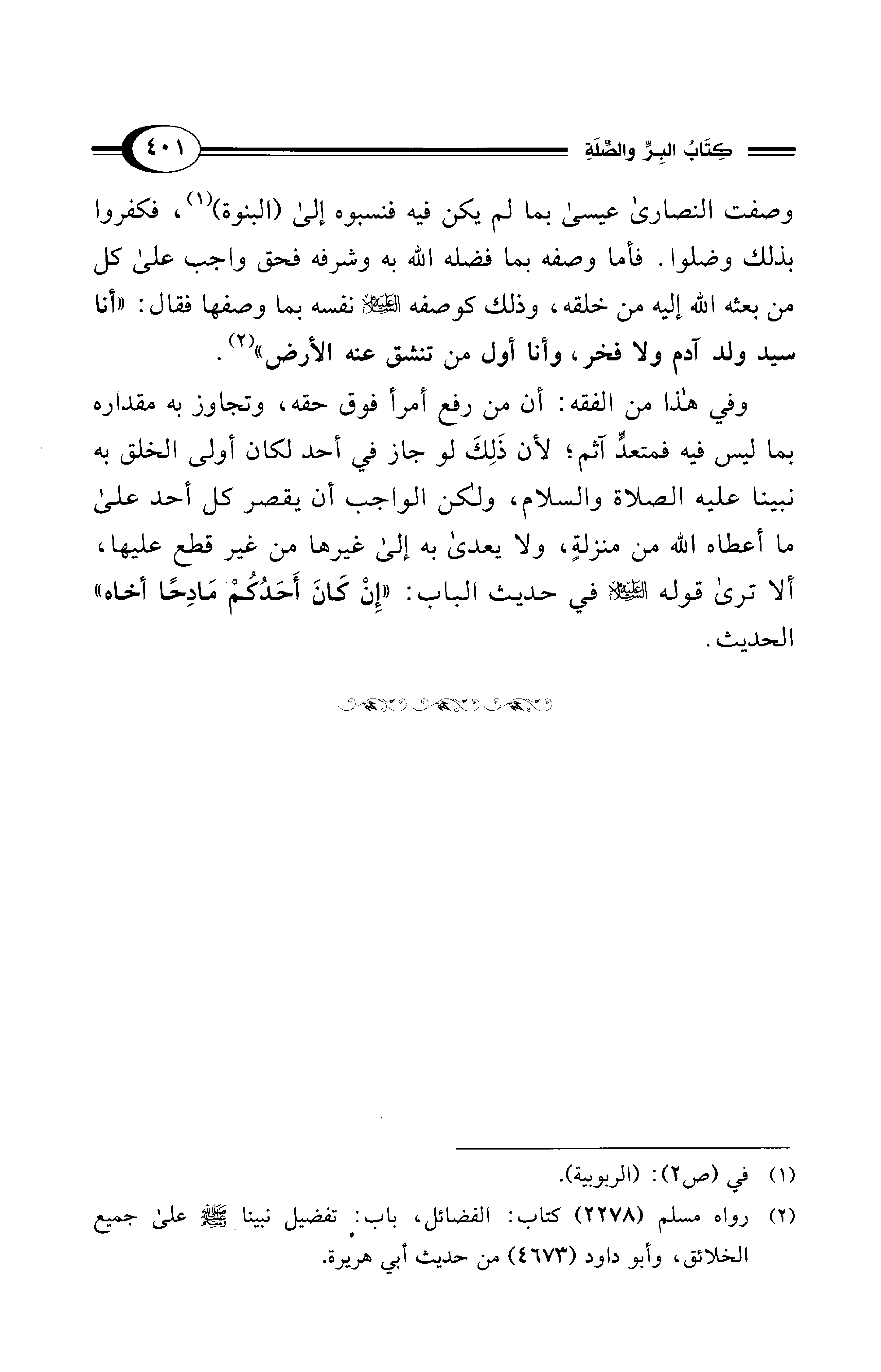 (¬2) رواه مسلم (2278) كتاب: الفضائل، باب: تفضيل نبينا - صلى الله عليه وسلم - على جميع الخلائق، وأبو داود (4673) من حديث أبي هريرة.