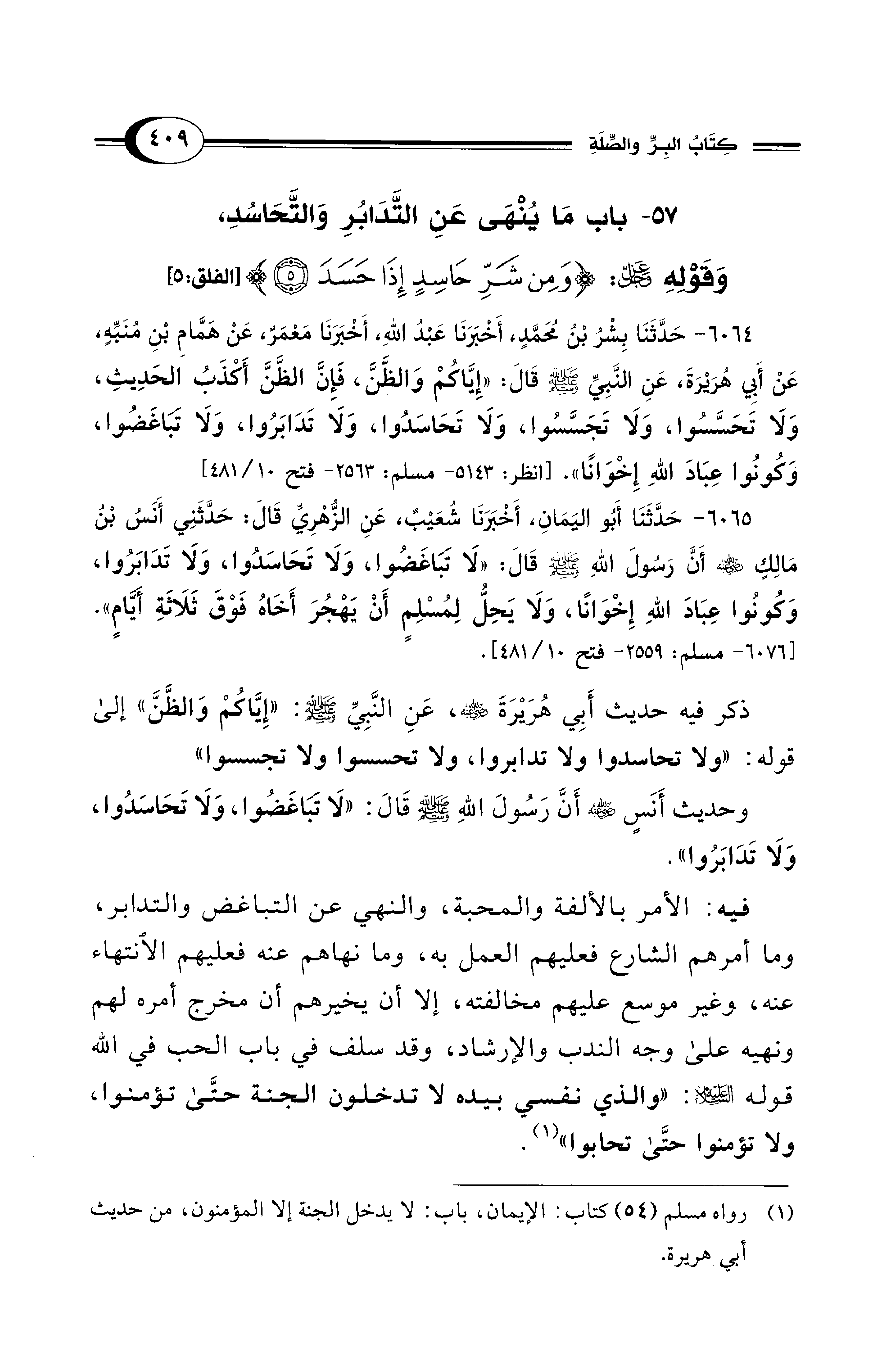 57 - باب مَا يُنْهَى عَنِ التَّدَابُرِ وَالتَّحَاسُدِ، وَقَوْلِهِ -عَزَّ وَجَلَّ-: {وَمِنْ شَرِّ حَاسِدٍ إِذَا حَسَدَ (5)} [الفلق: 5]