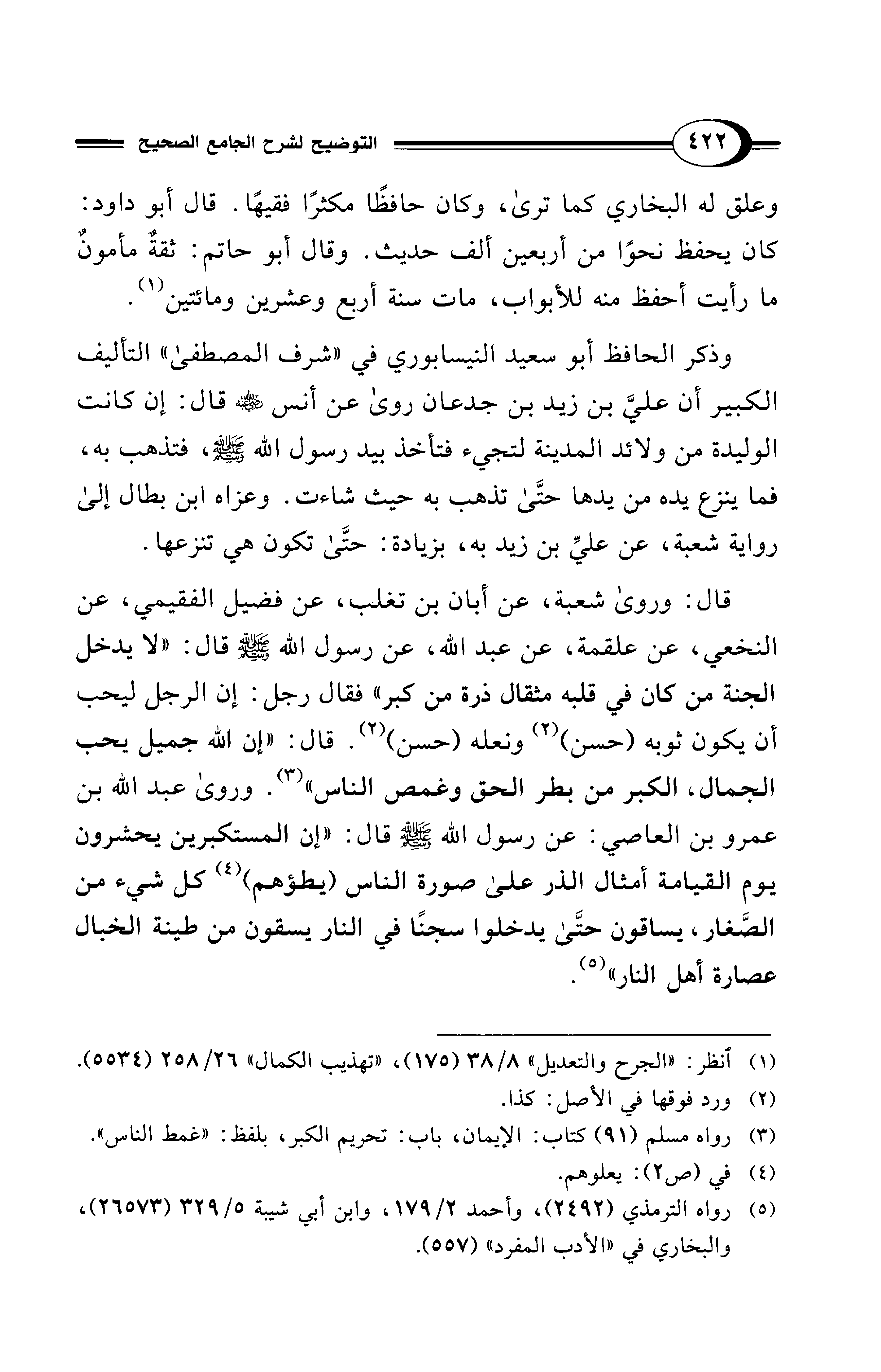 (¬3) رواه مسلم (91) كتاب: الإيمان، باب: تحريم الكبر، بلفظ: "غمط الناس".