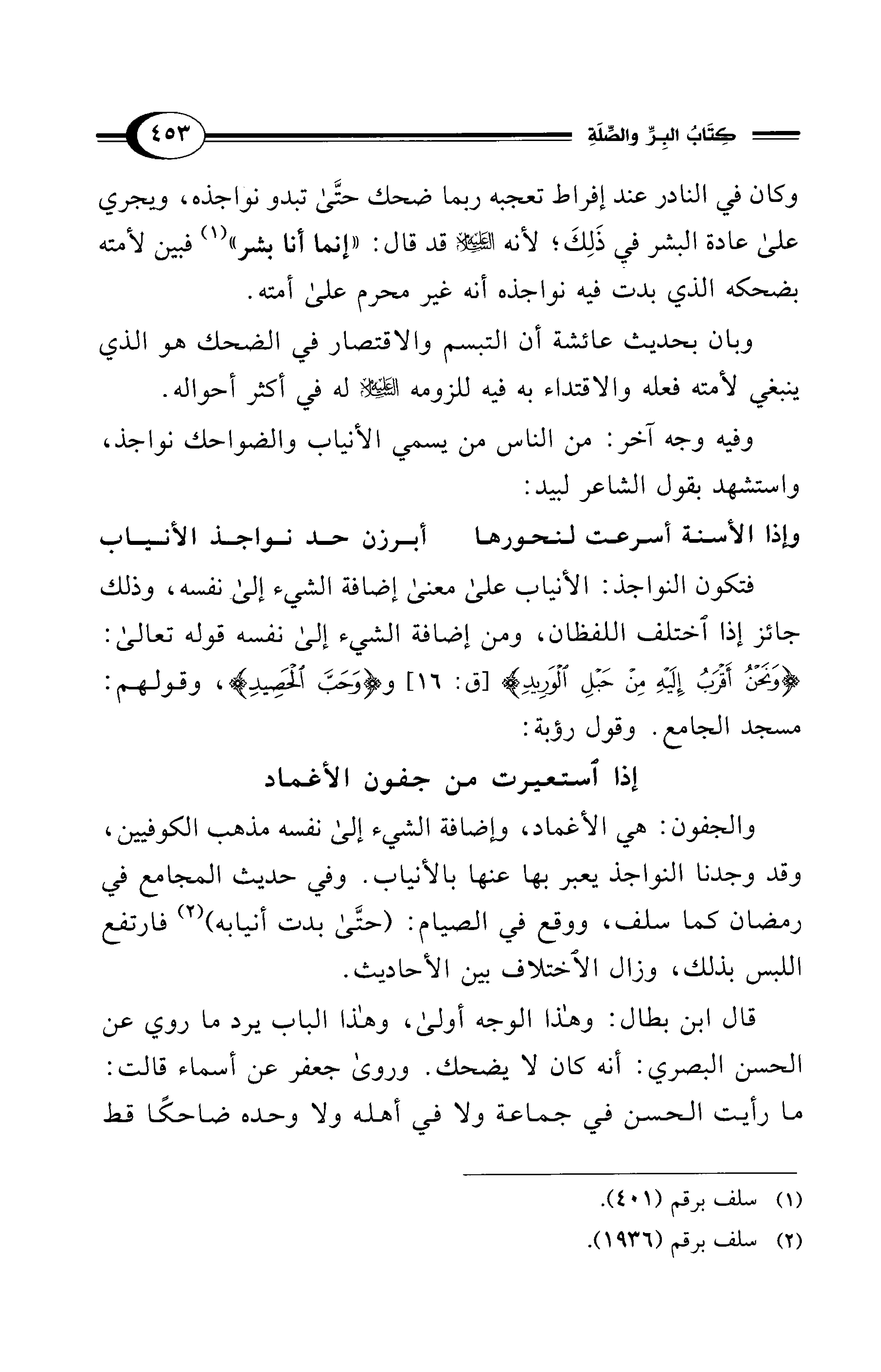 قال ابن بطال: وهذا الوجه أولى، وهذا الباب يرد ما روي عن الحسن البصري: أنه كان لا يضحك. وروى جعفر عن أسماء قالت: ما رأيت الحسن في جماعة ولا في أهله ولا وحده ضاحكًا قط