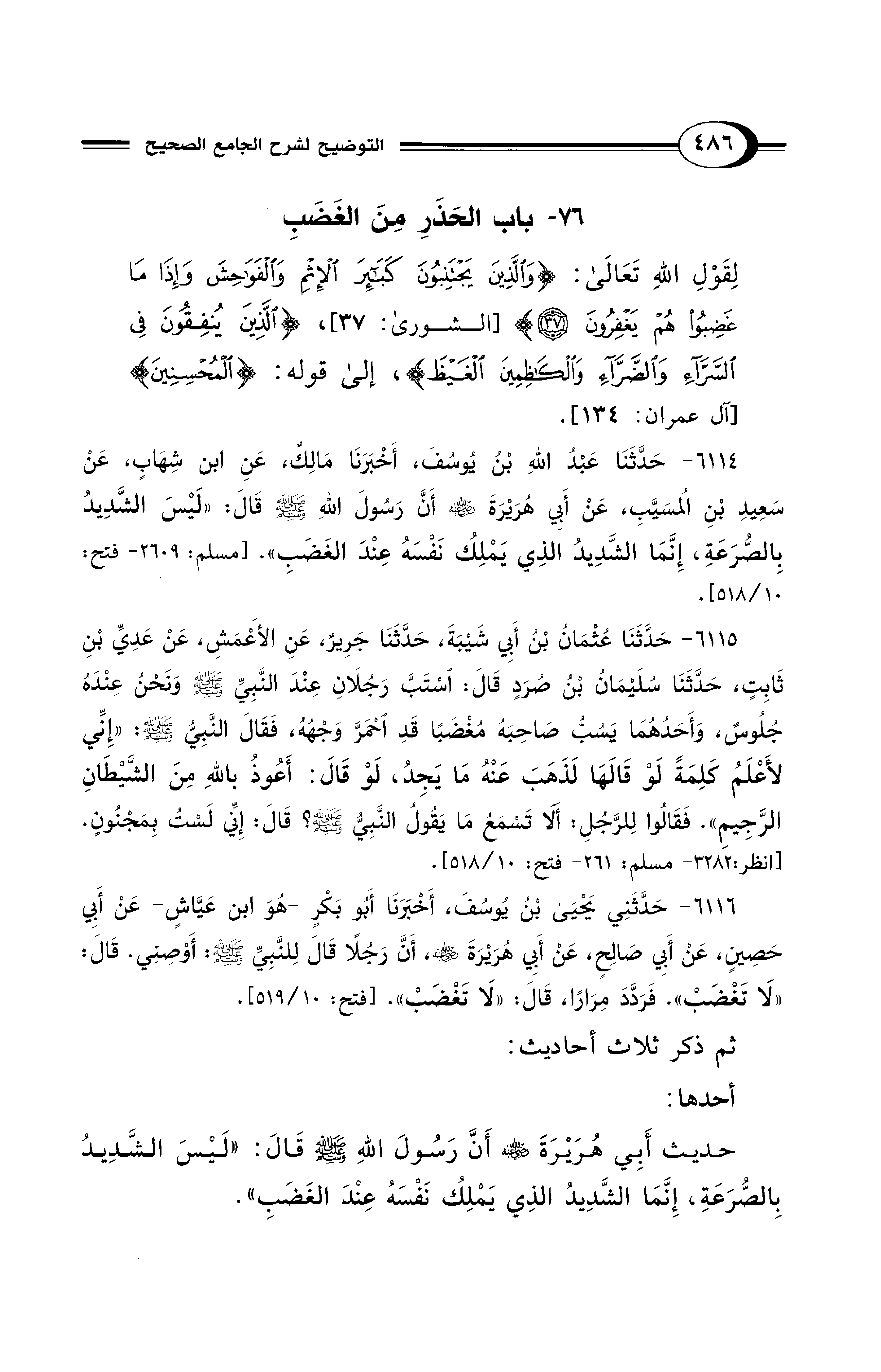 76 - باب الحَذَرِ مِنَ الْغَضَبِ