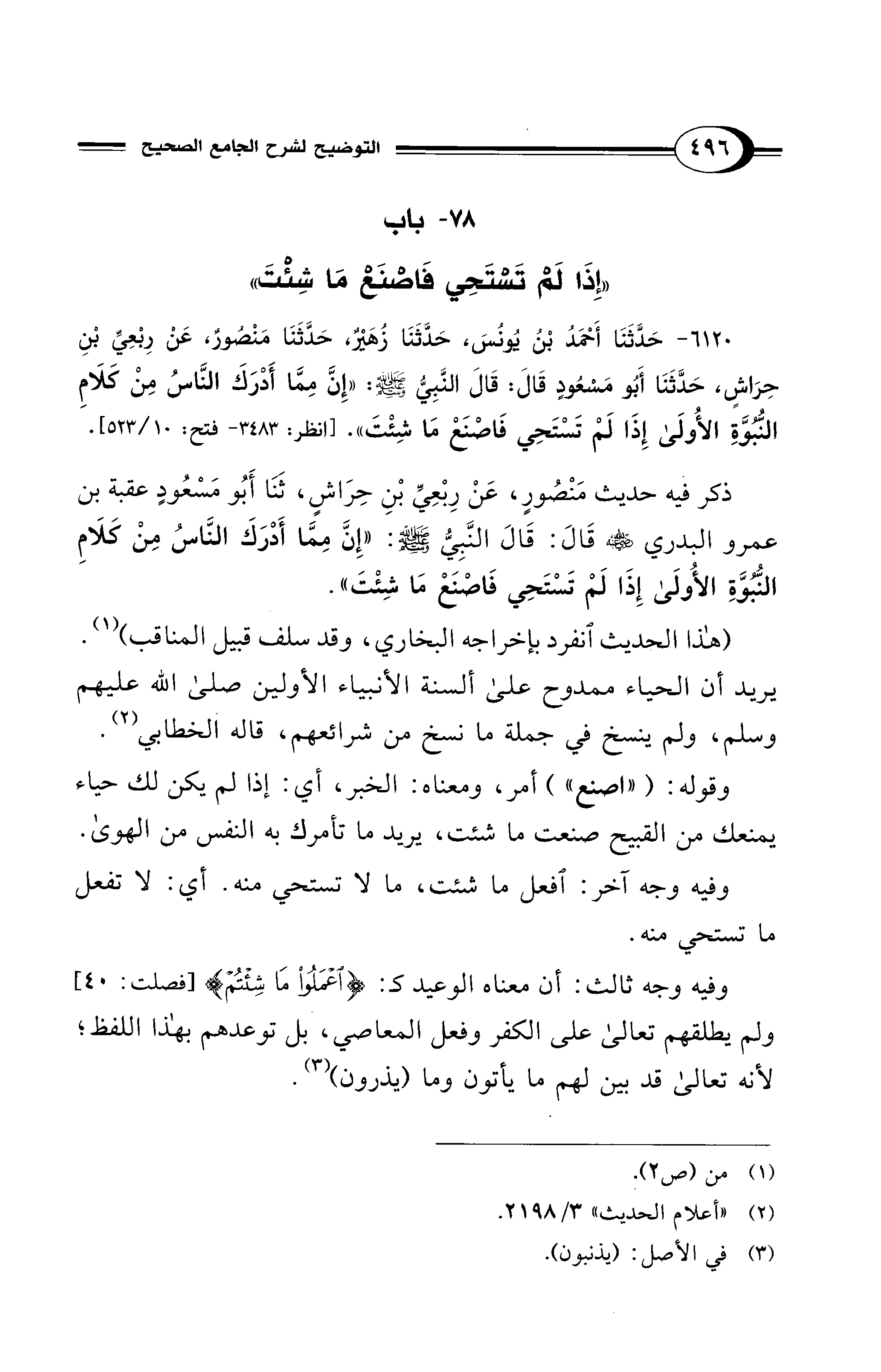 78 - باب "إِذَا لَمْ تَسْتَحِي فَاصْنَعْ مَا شِئْتَ"