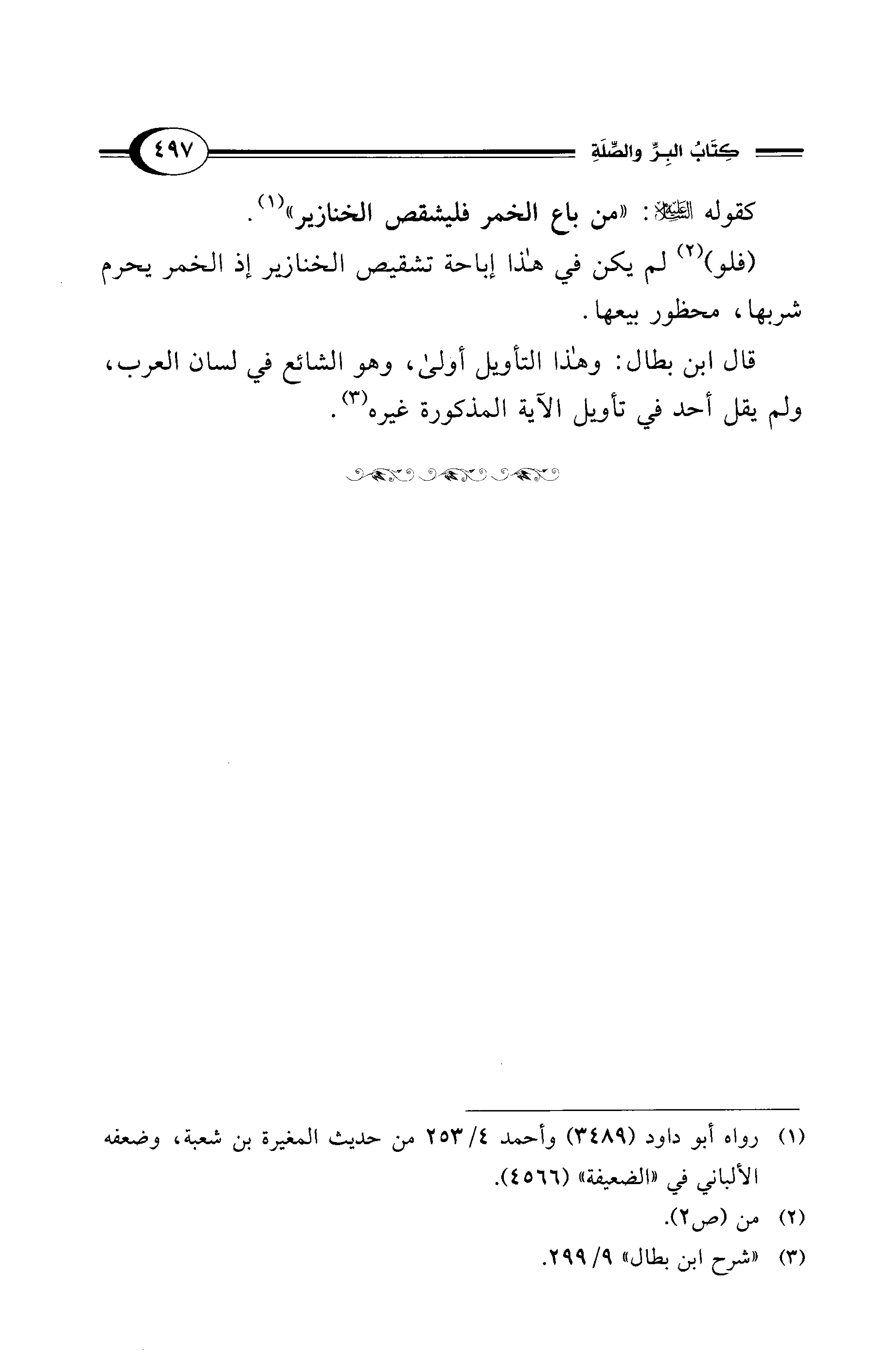 (فلو) (¬2) لم يكن في هذا إباحة تشقيص الخنازير إذ الخمر يحرم شربها، محظور بيعها.