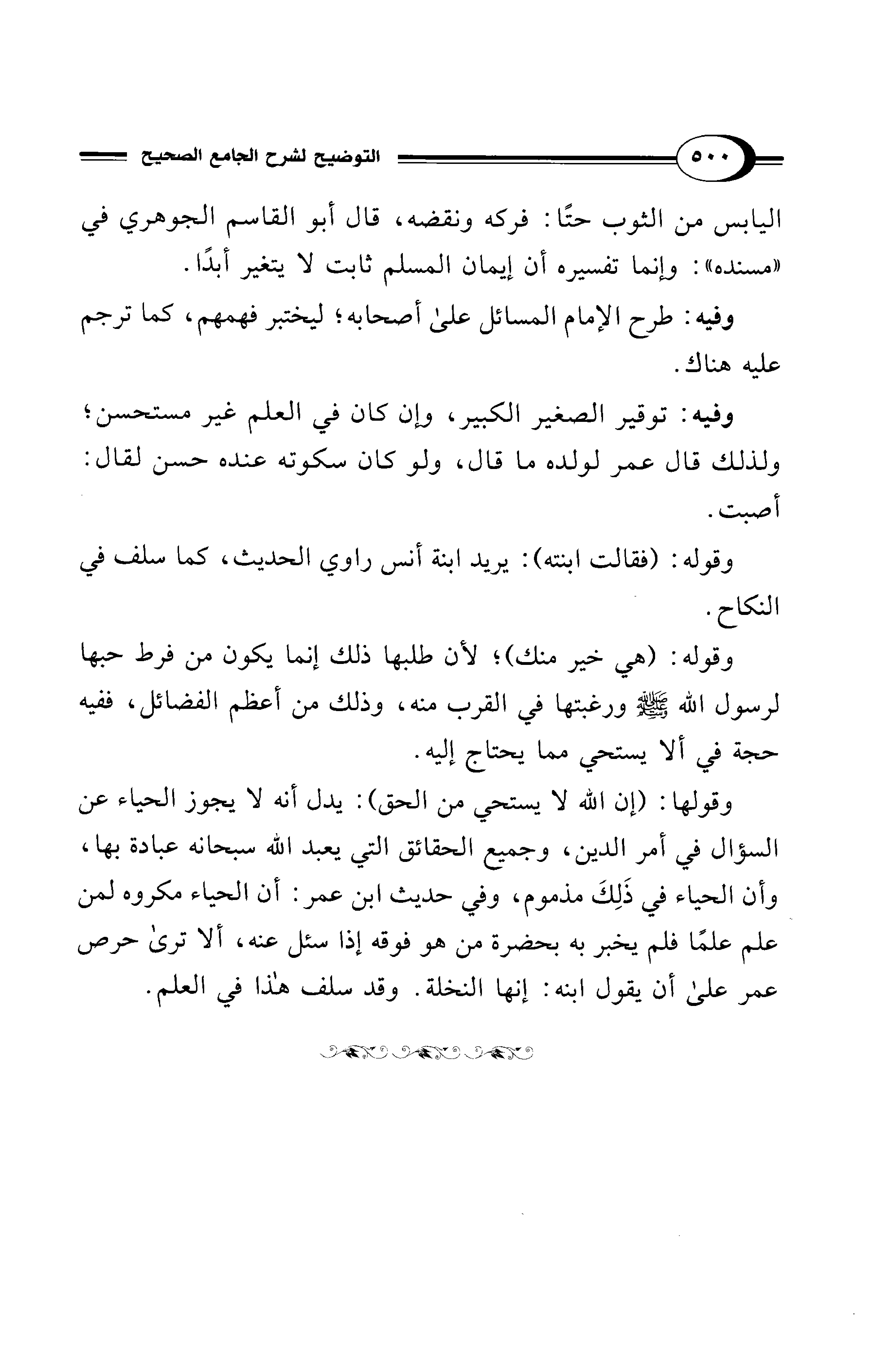 وفيه: توقير الصغير الكبير، وإن كان في العلم غير مستحسن؛ ولذلك قال عمر لولده ما قال، ولو كان سكوته عنده حسن لقال: أصبت.
