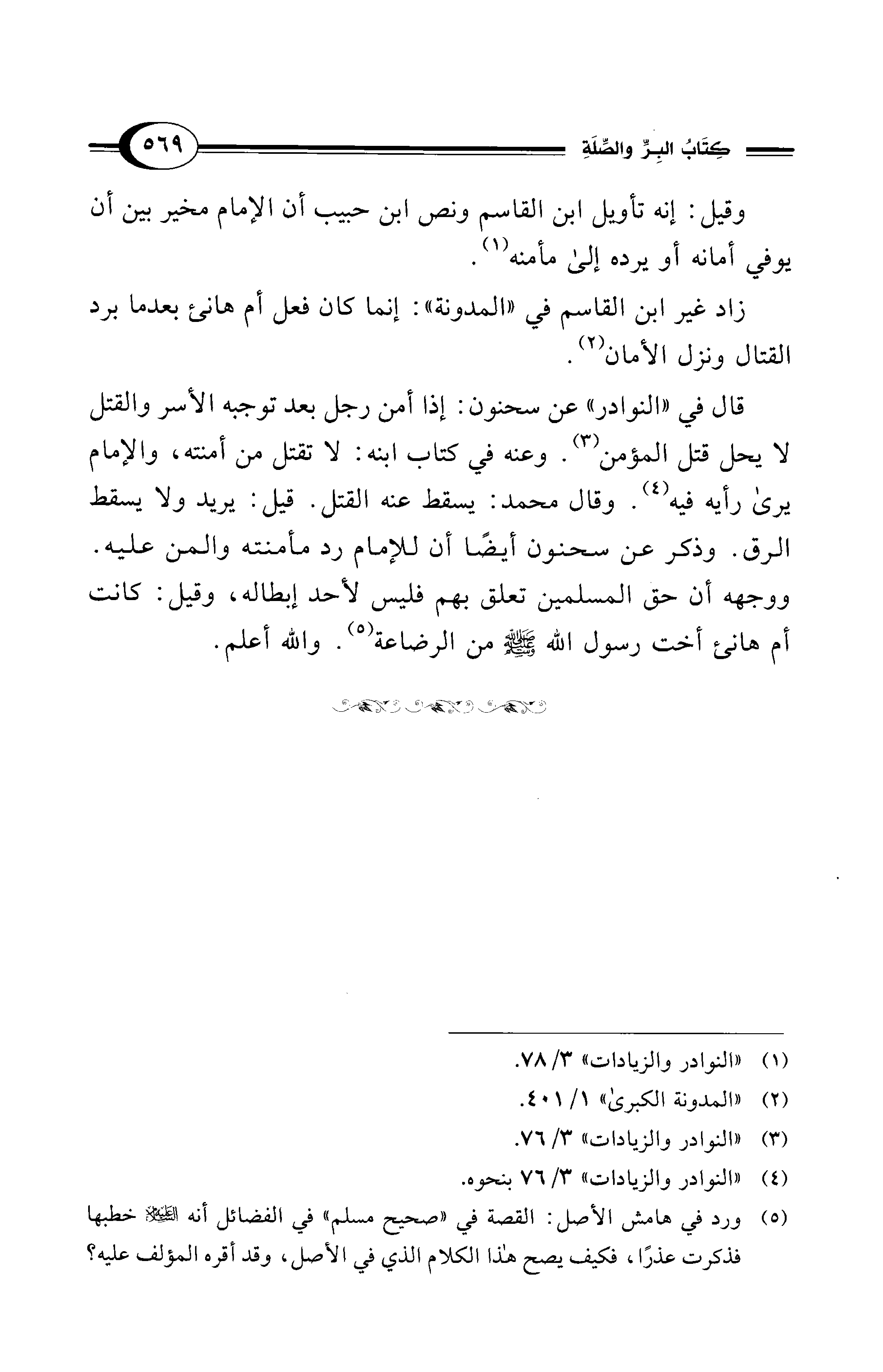 (¬4) "النوادر والزيادات" 3/ 76 بنحوه.