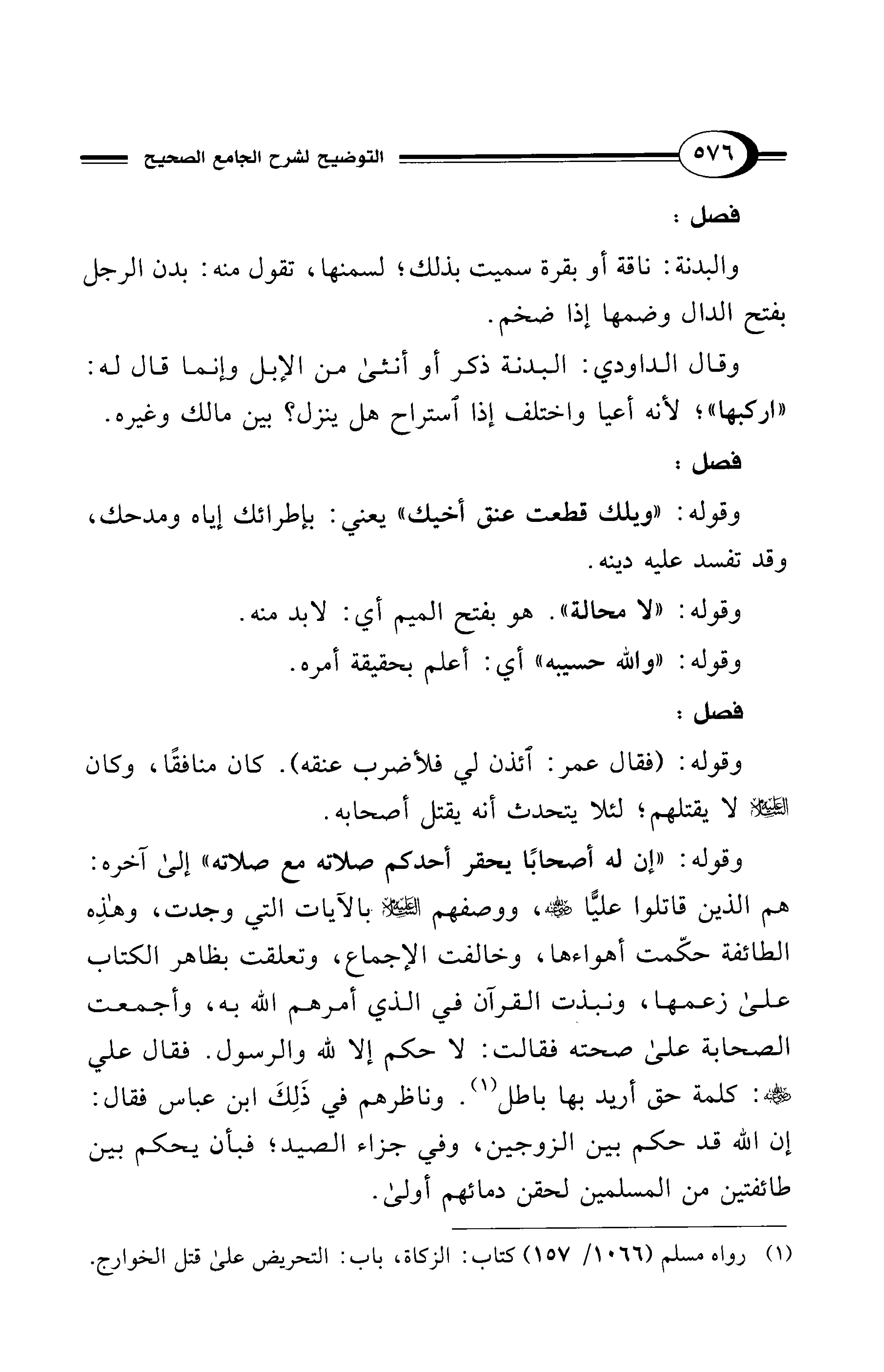 (¬1) رواه مسلم (1066/ 157) كتاب: الزكاة، باب: التحريض على قتل الخوارج.