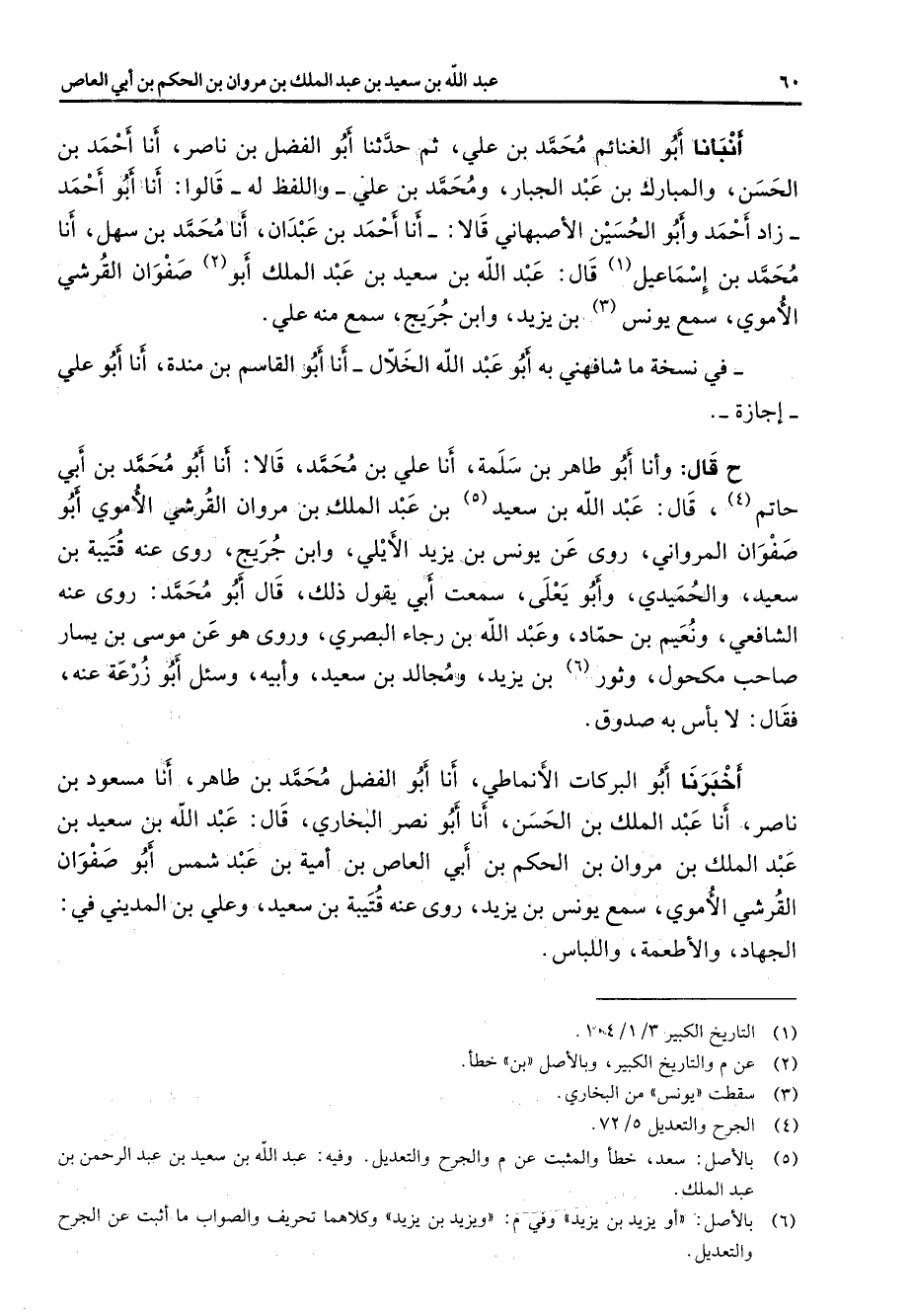 وفيه: عبد الله بن سعيد بن عبد الرحمن بن عبد الملك