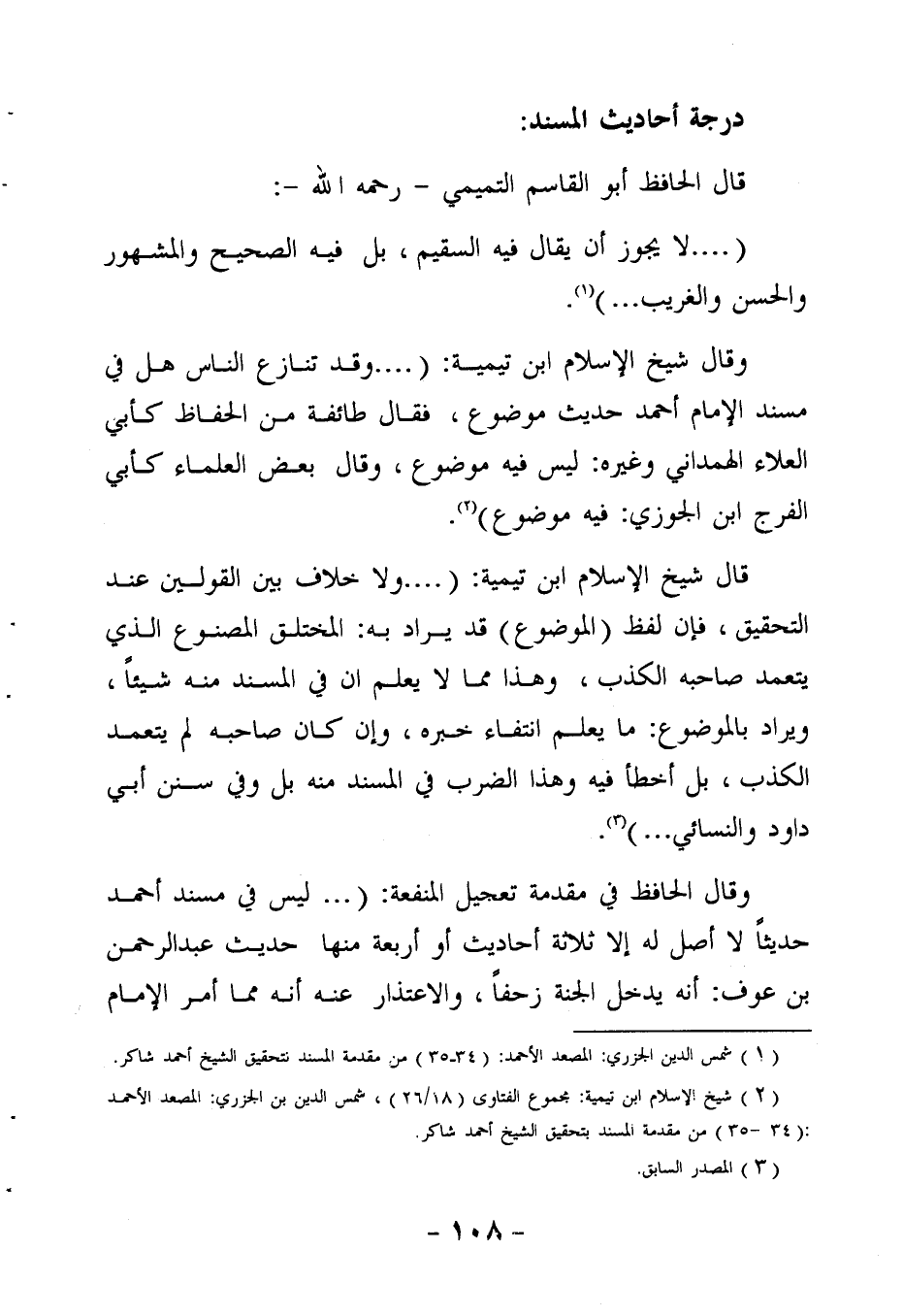 2 شيخ الإسلام ابن تيمية: مجموع الفتاوى 18 / 26، شمس الدين ابن الجزري: المصعد الأحمد ص:34 – 35 من مقدمة المسند بتحقيق الشيخ أحمد شاكر.