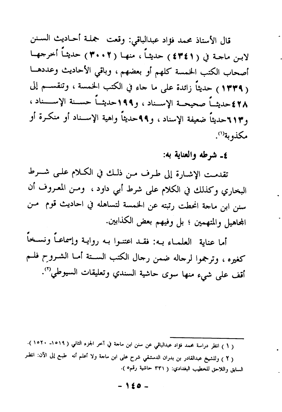 1 انظر: دراسة محمد فؤاد عبد الباقي عن سنن ابن ماجه في آخر الجزء الثاني 2 / 1519 – 1520.