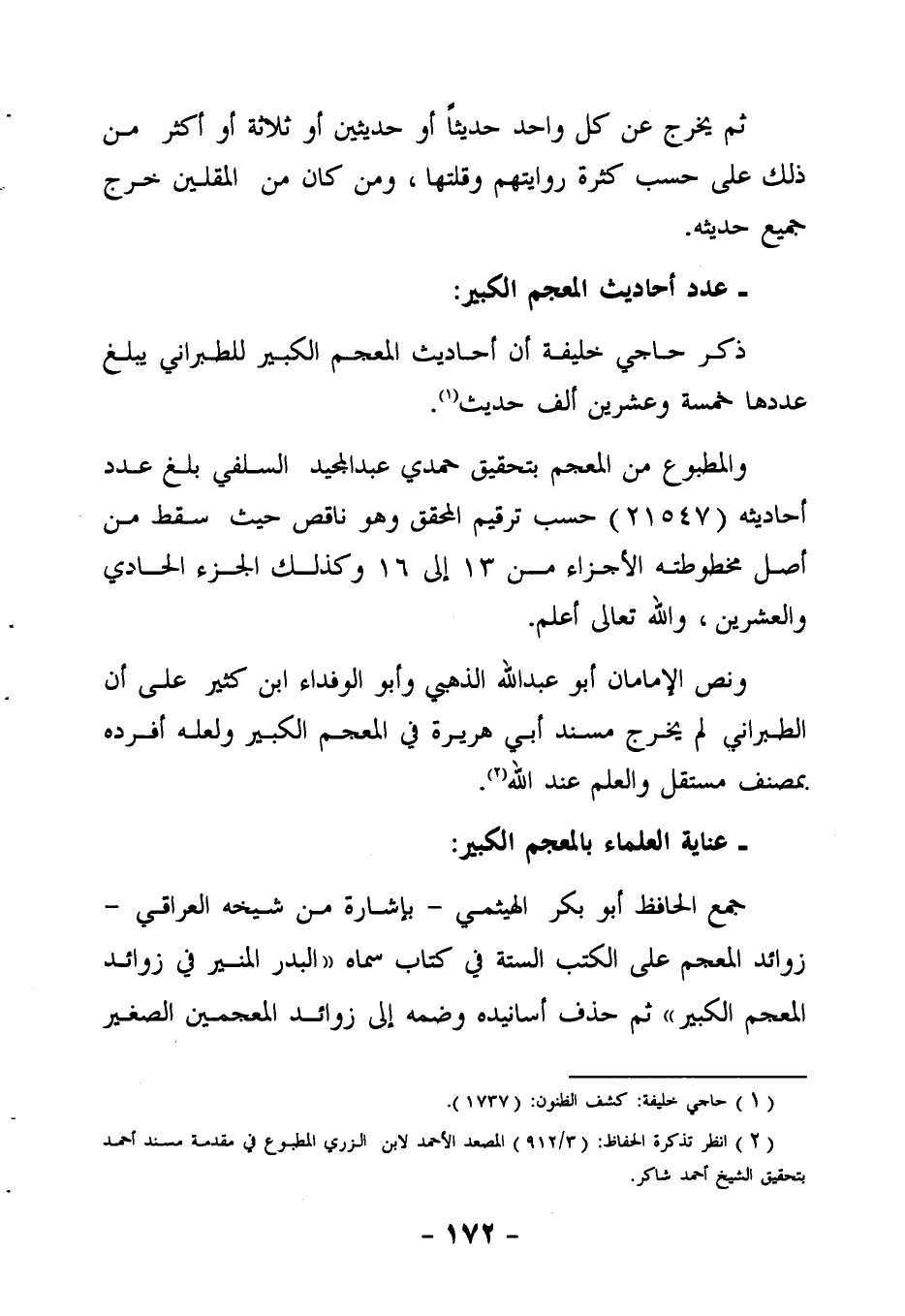 ذكر حاجى خليفة أن أحاديث "المعجم الكبير" للطبرانى يبلغ عددها خمسة وعشرين ألف حديث. 1