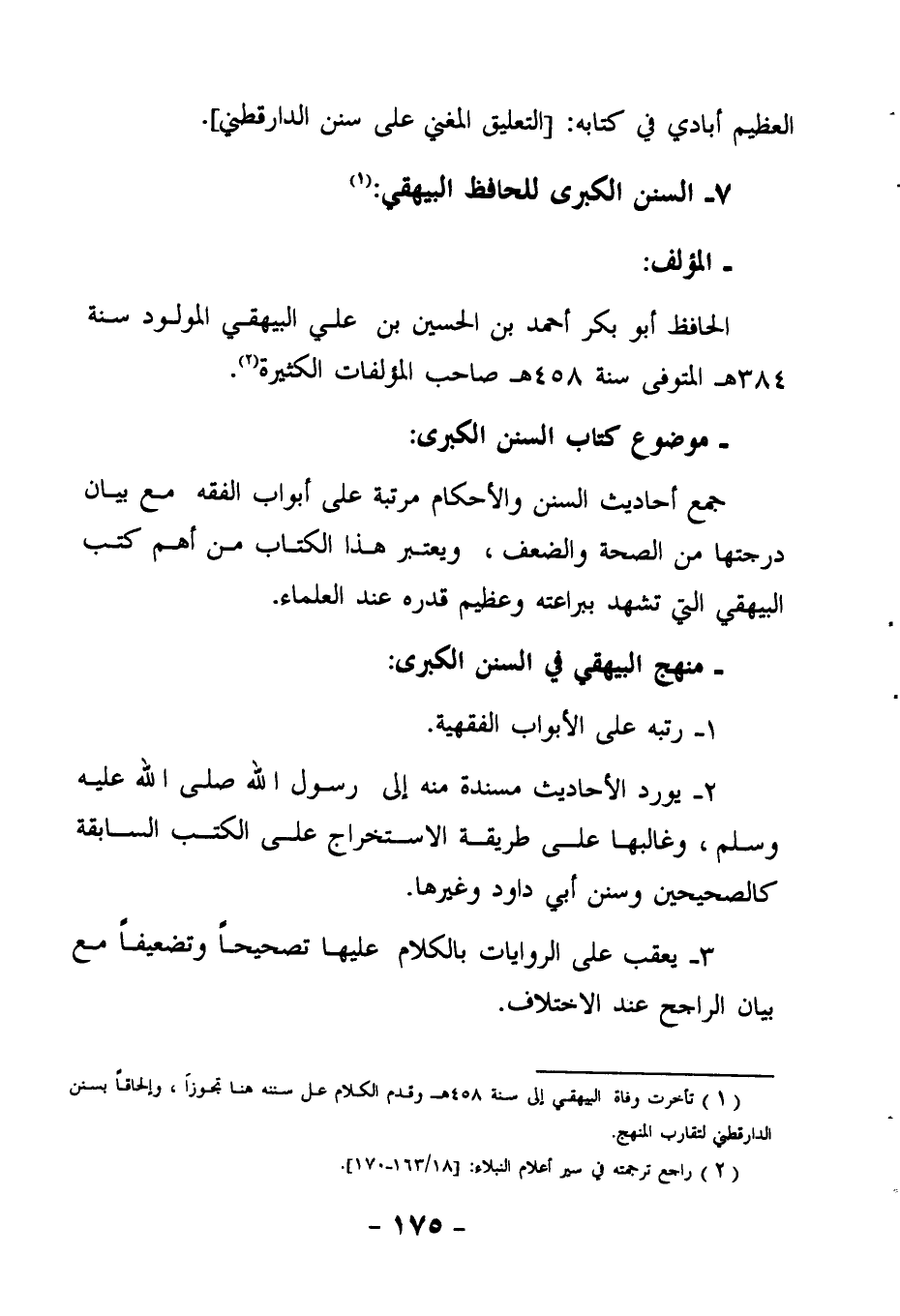 1 تأخرت وفاة البيهقي إلى سنة 458 هـ، وقُدِّم الكلام على سننه تجوُّزاً وإلحاقاً بسنن الدارقطني لتقارب المنهج.