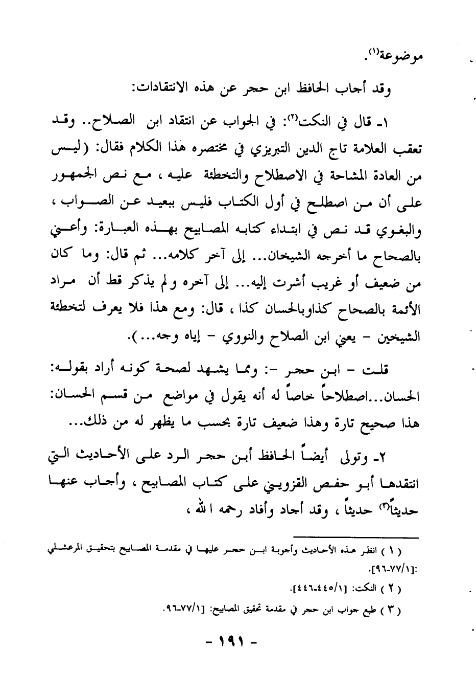 3 طبع جواب ابن حجر في مقدمة تحقيق المصابيح 1 / 77 – 96.