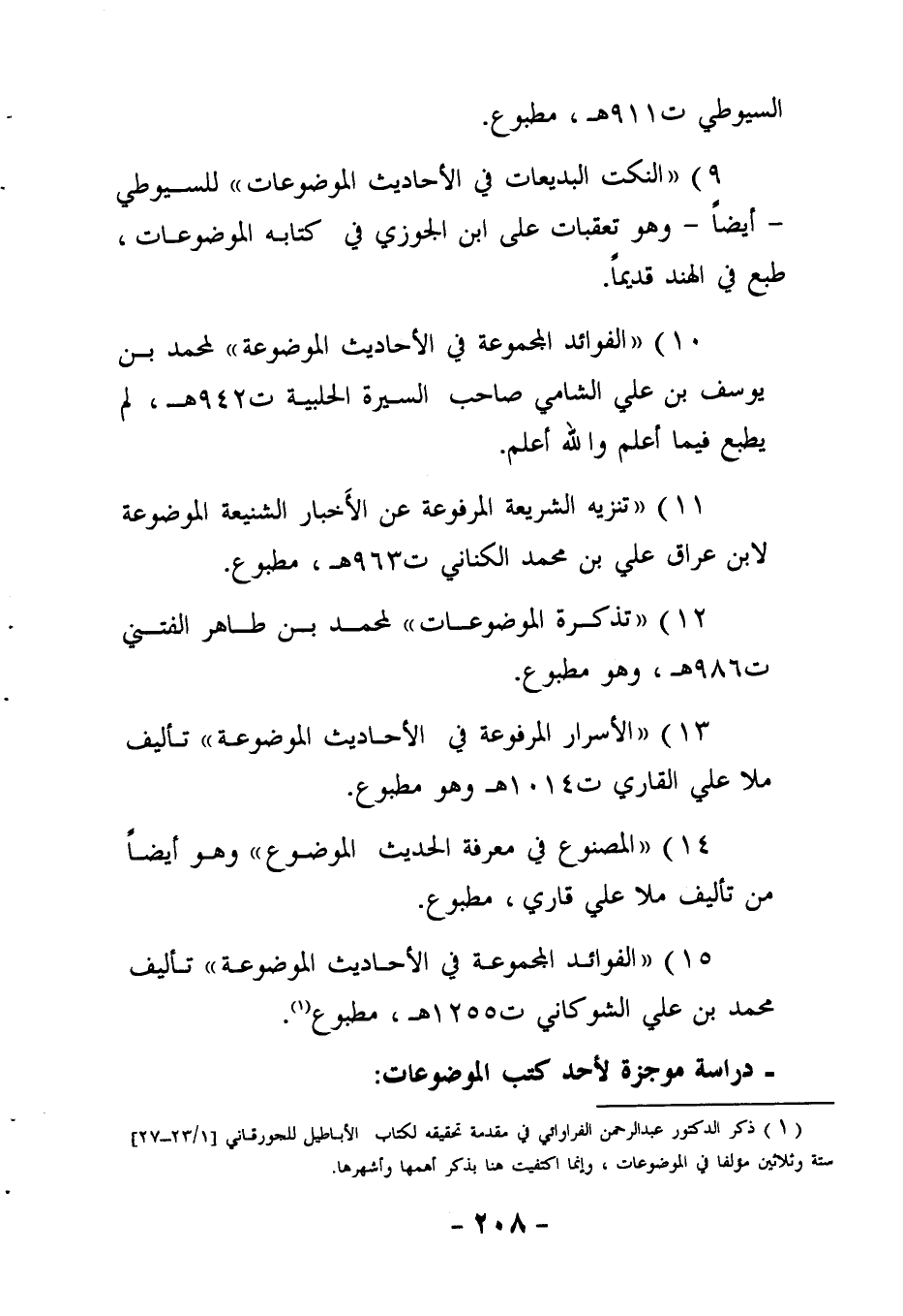 13- الأسرار المرفوعة في الأحاديث الموضوعة تأليف ملا علي القاري (ت 1014 هـ) وهو مطبوع.